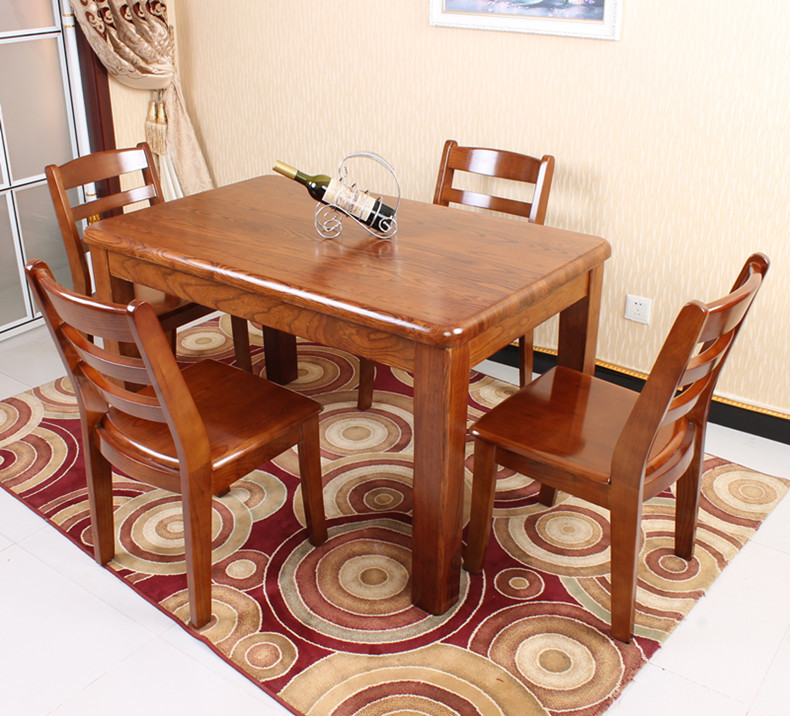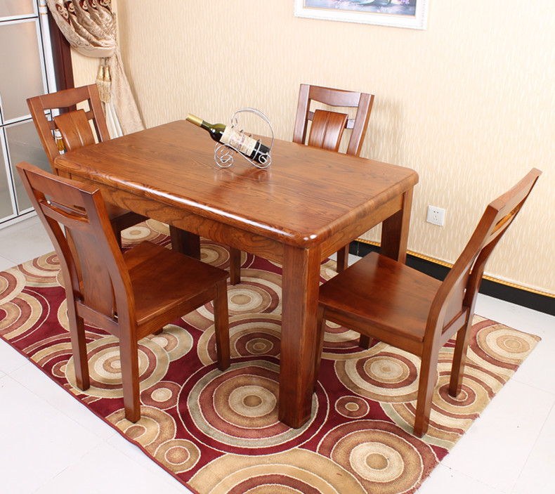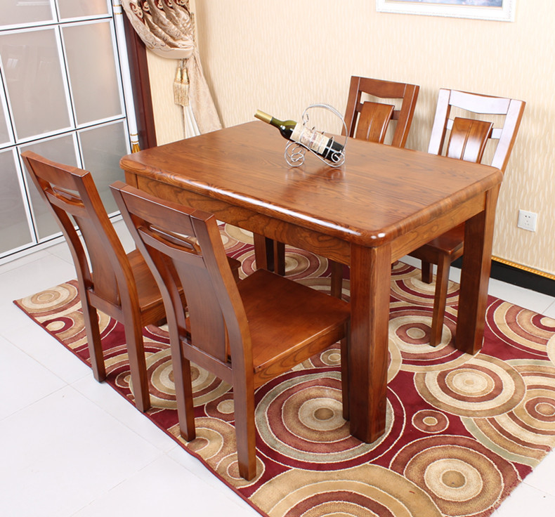 Tất cả các bàn ghế ăn bằng gỗ nguyên khối Bàn ghế ăn bằng gỗ du phong cách Trung Quốc hiện đại kết hợp cho 6 người bàn ăn hình chữ nhật trong căn hộ vừa và nhỏ
