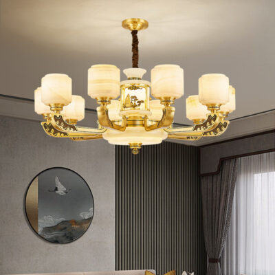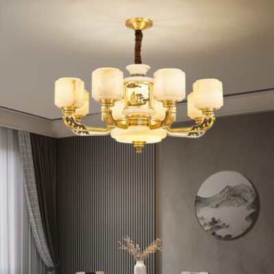 Tất cả các đèn phòng khách bằng đồng và ngọc bích không khí biệt thự kiểu Trung Quốc mới đèn nhà tự xây nhà hàng nghiên cứu đèn gia dụng bán buôn