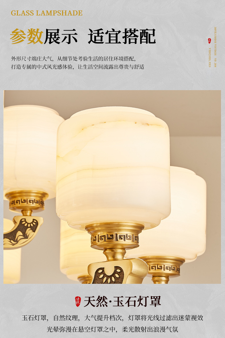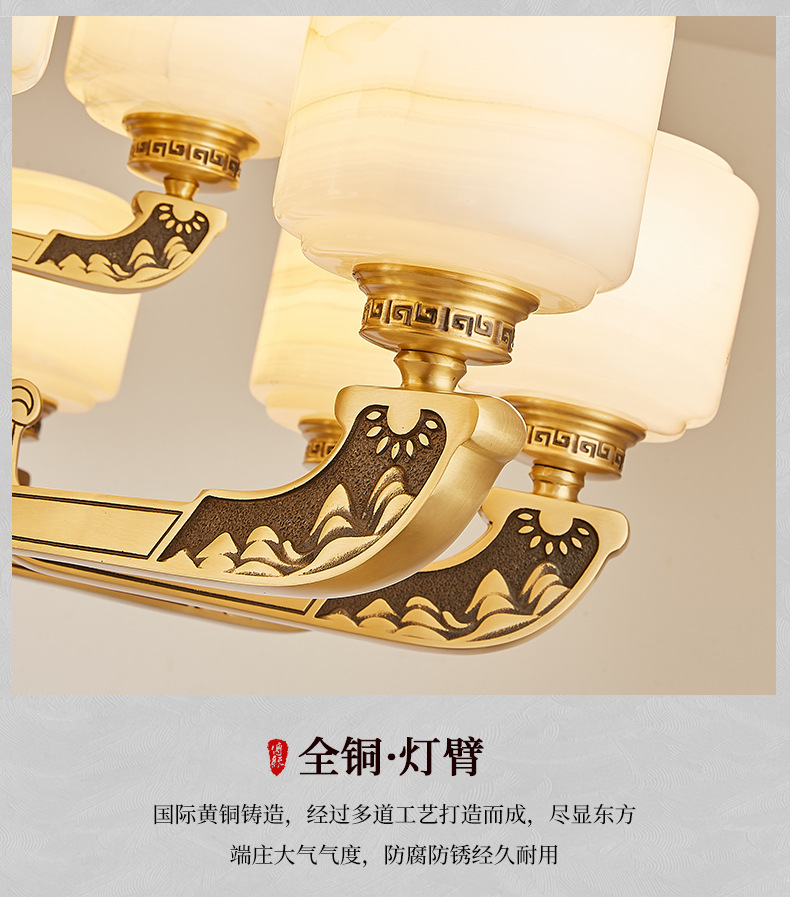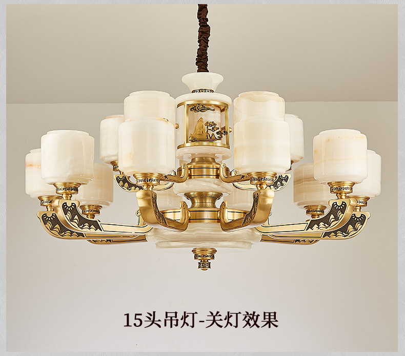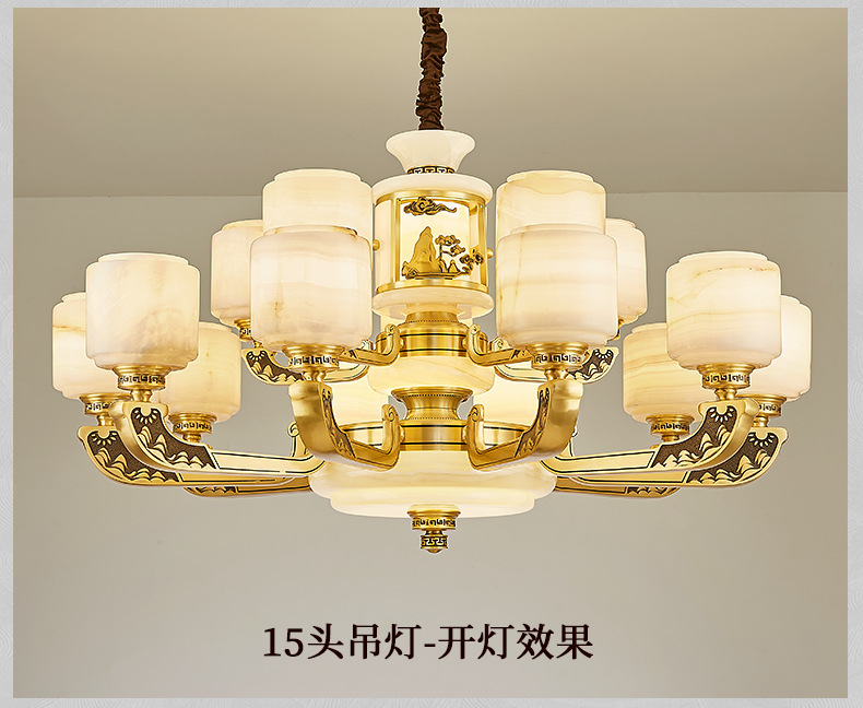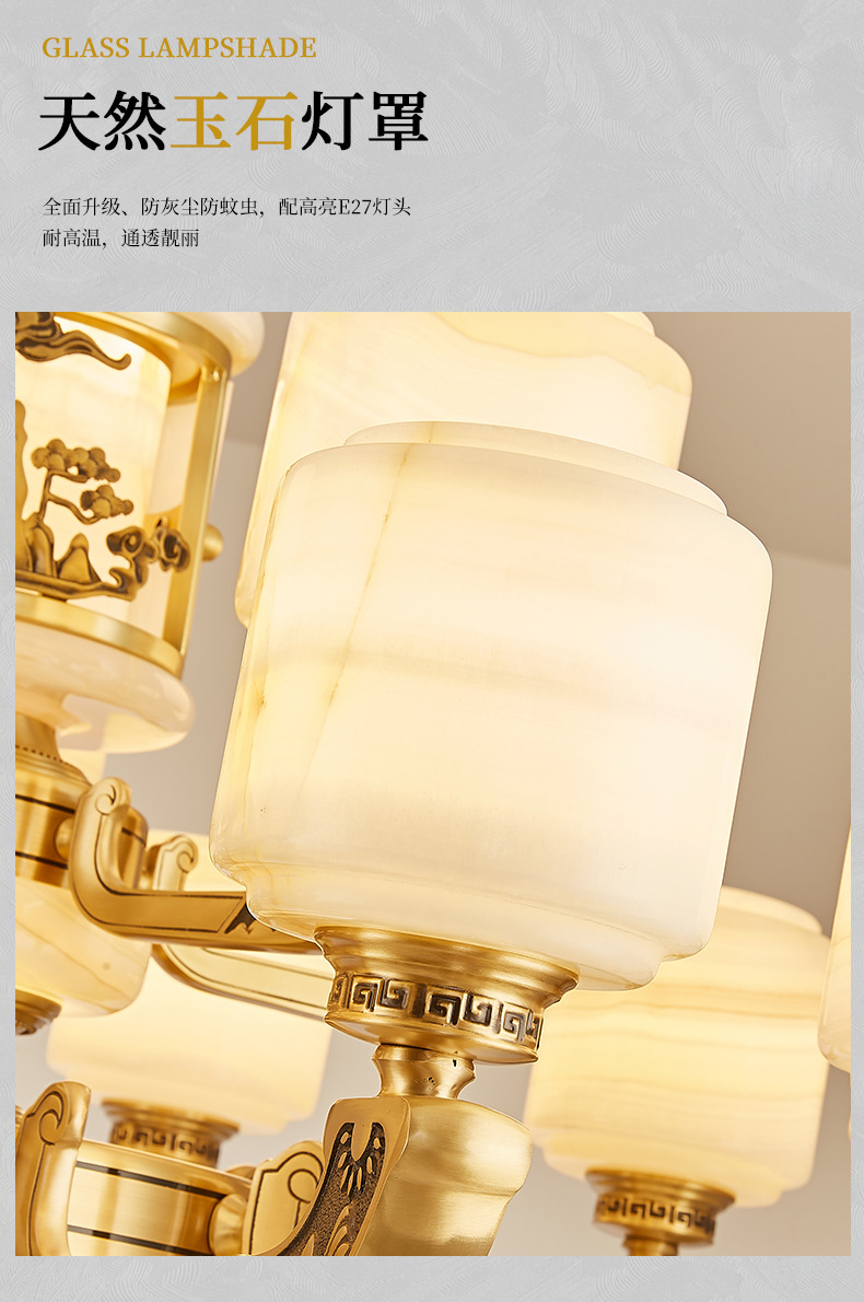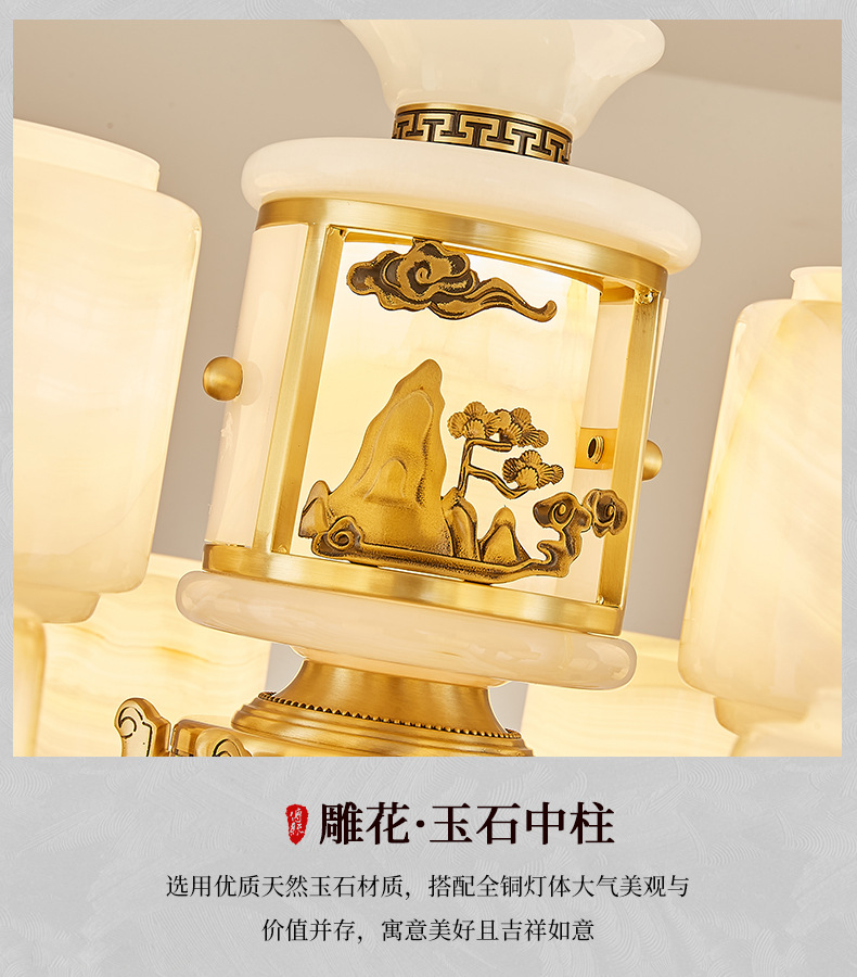 Tất cả các đèn phòng khách bằng đồng và ngọc bích không khí biệt thự kiểu Trung Quốc mới đèn nhà tự xây nhà hàng nghiên cứu đèn gia dụng bán buôn