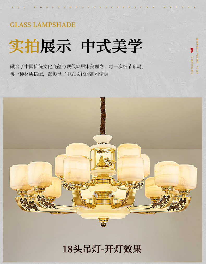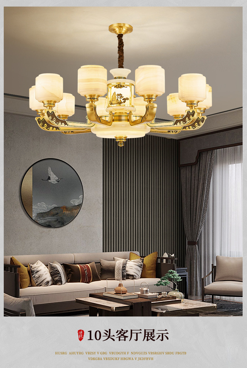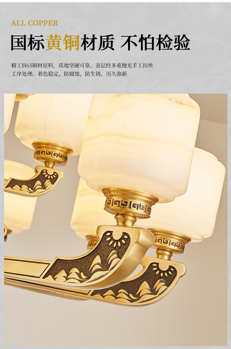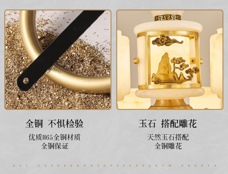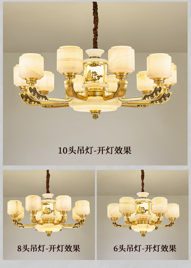 Tất cả các đèn phòng khách bằng đồng và ngọc bích không khí biệt thự kiểu Trung Quốc mới đèn nhà tự xây nhà hàng nghiên cứu đèn gia dụng bán buôn