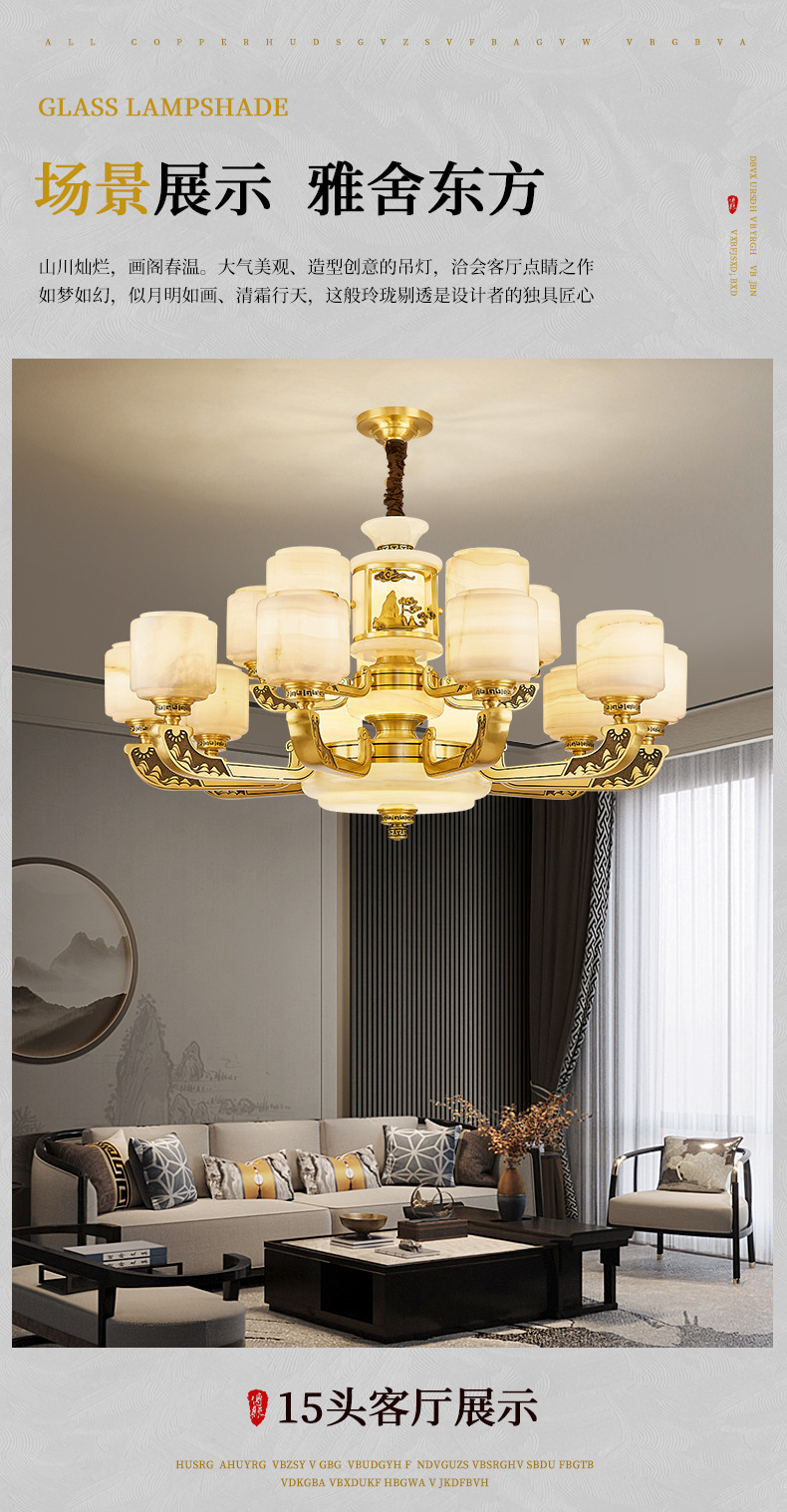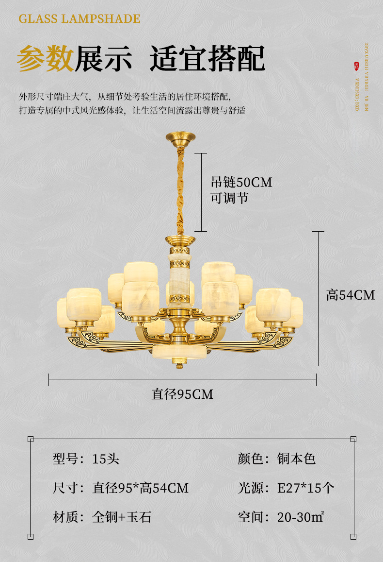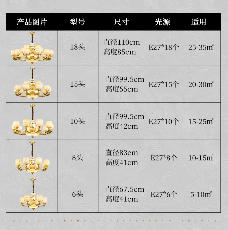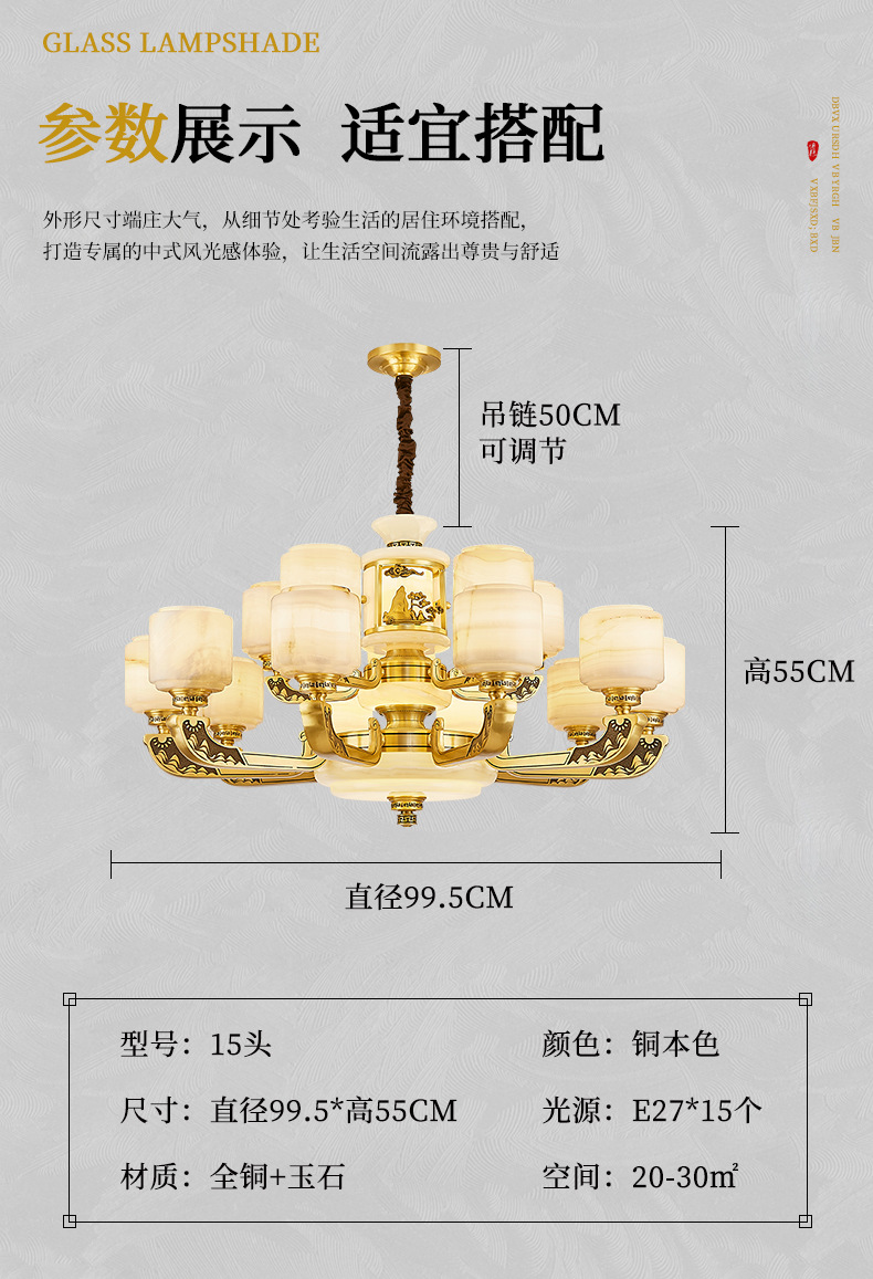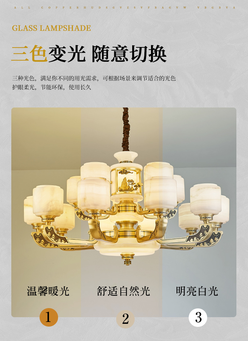 Tất cả các đèn phòng khách bằng đồng và ngọc bích không khí biệt thự kiểu Trung Quốc mới đèn nhà tự xây nhà hàng nghiên cứu đèn gia dụng bán buôn