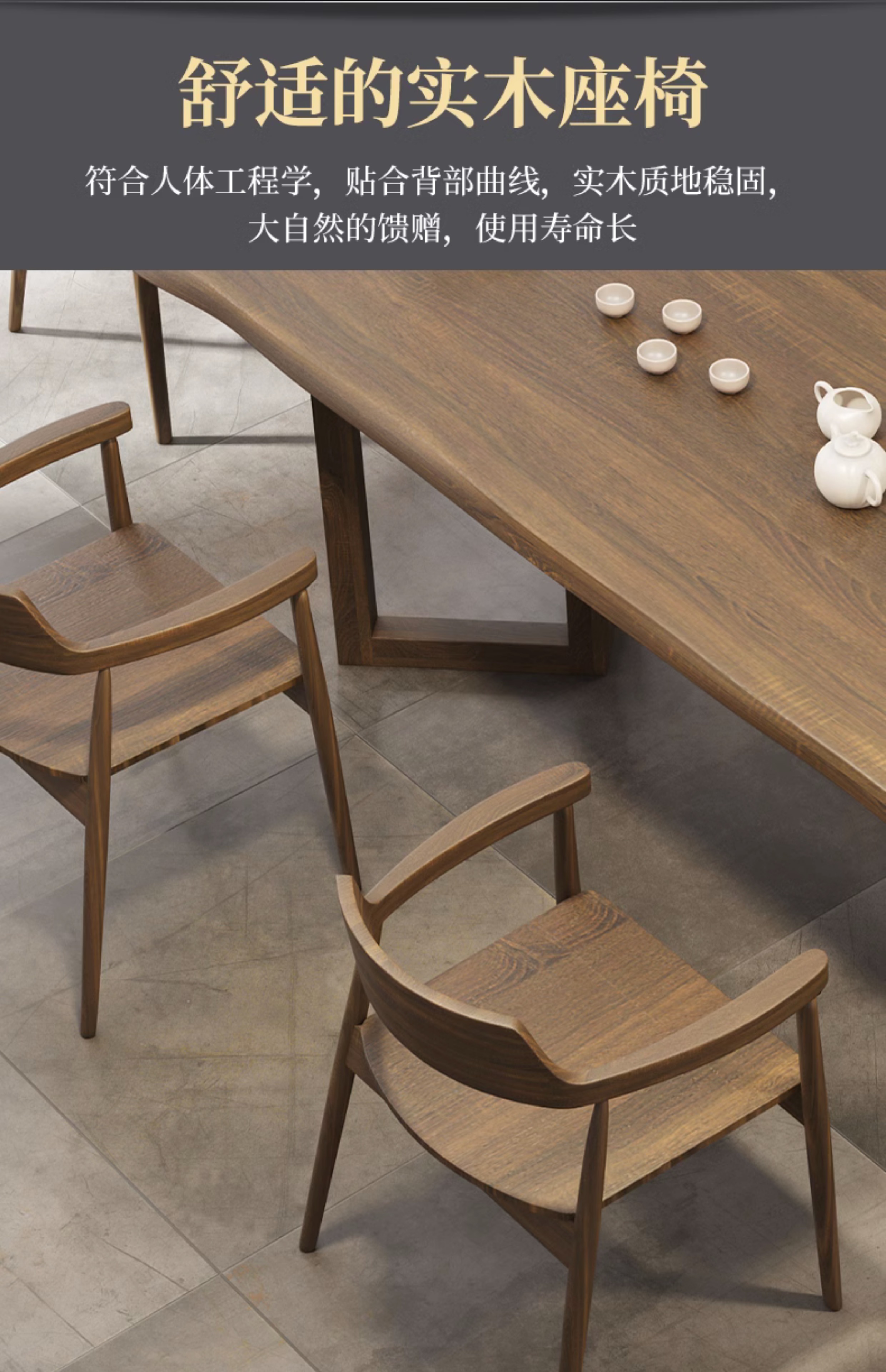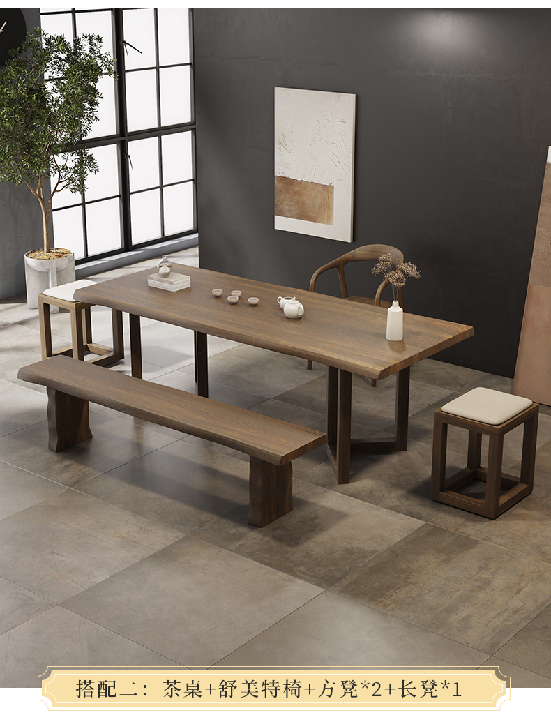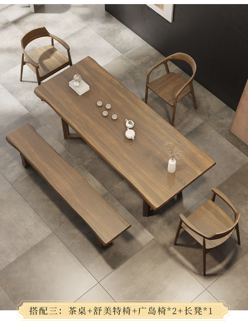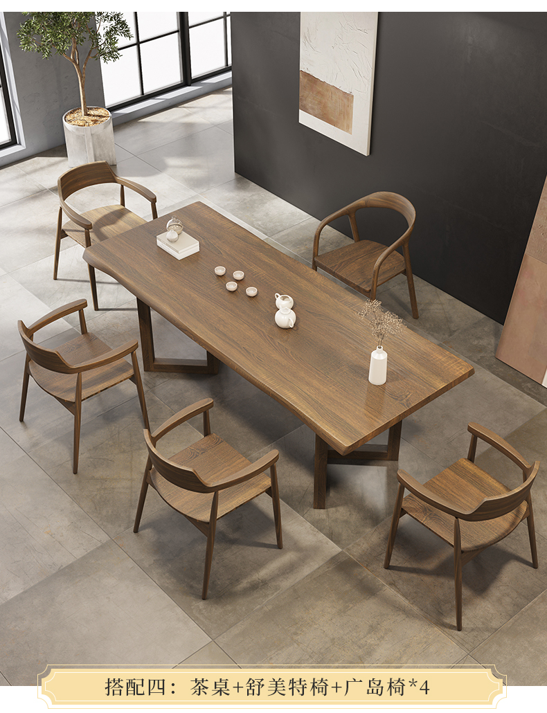 Tất cả các loại bàn trà và ghế kết hợp bằng gỗ nguyên khối, một bàn và năm ghế, bàn trà lớn đơn giản và hiện đại, phòng khách bằng gỗ, bàn trà gia đình
