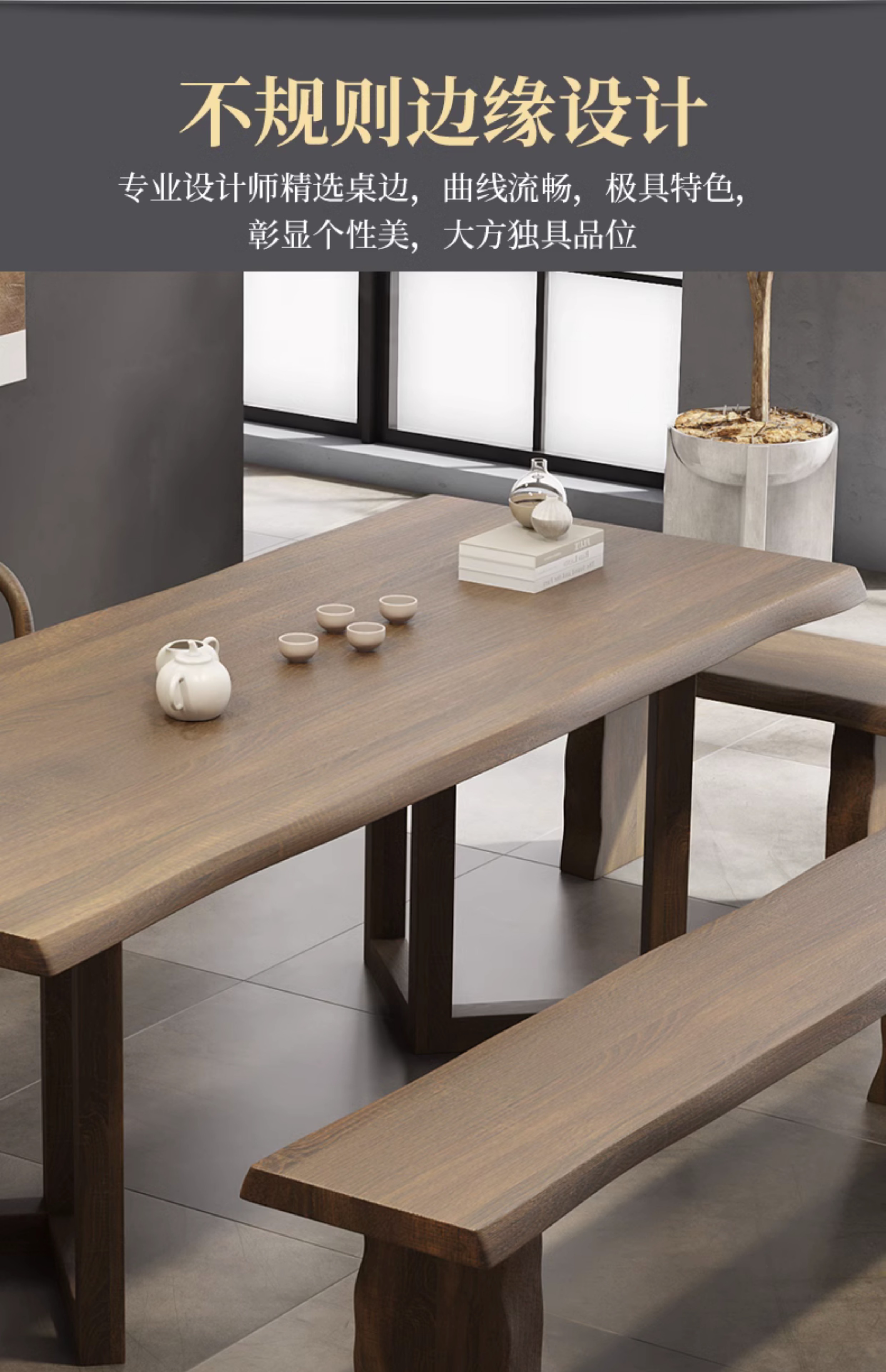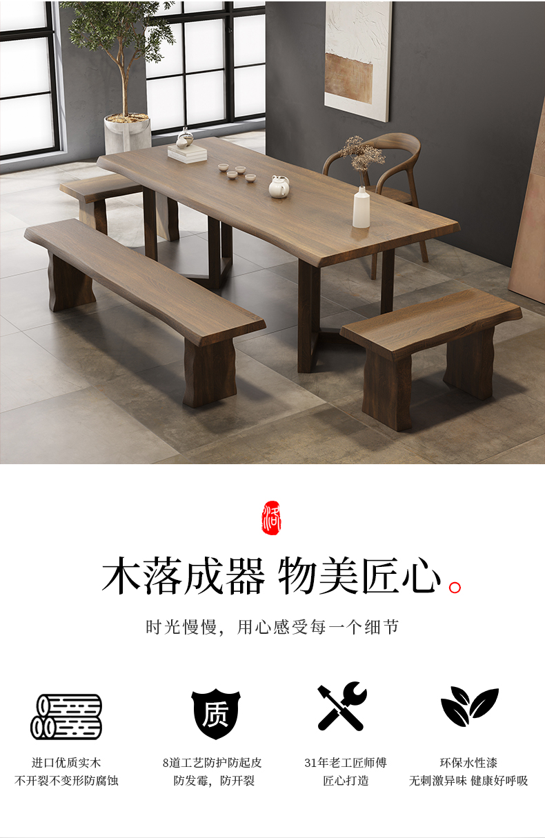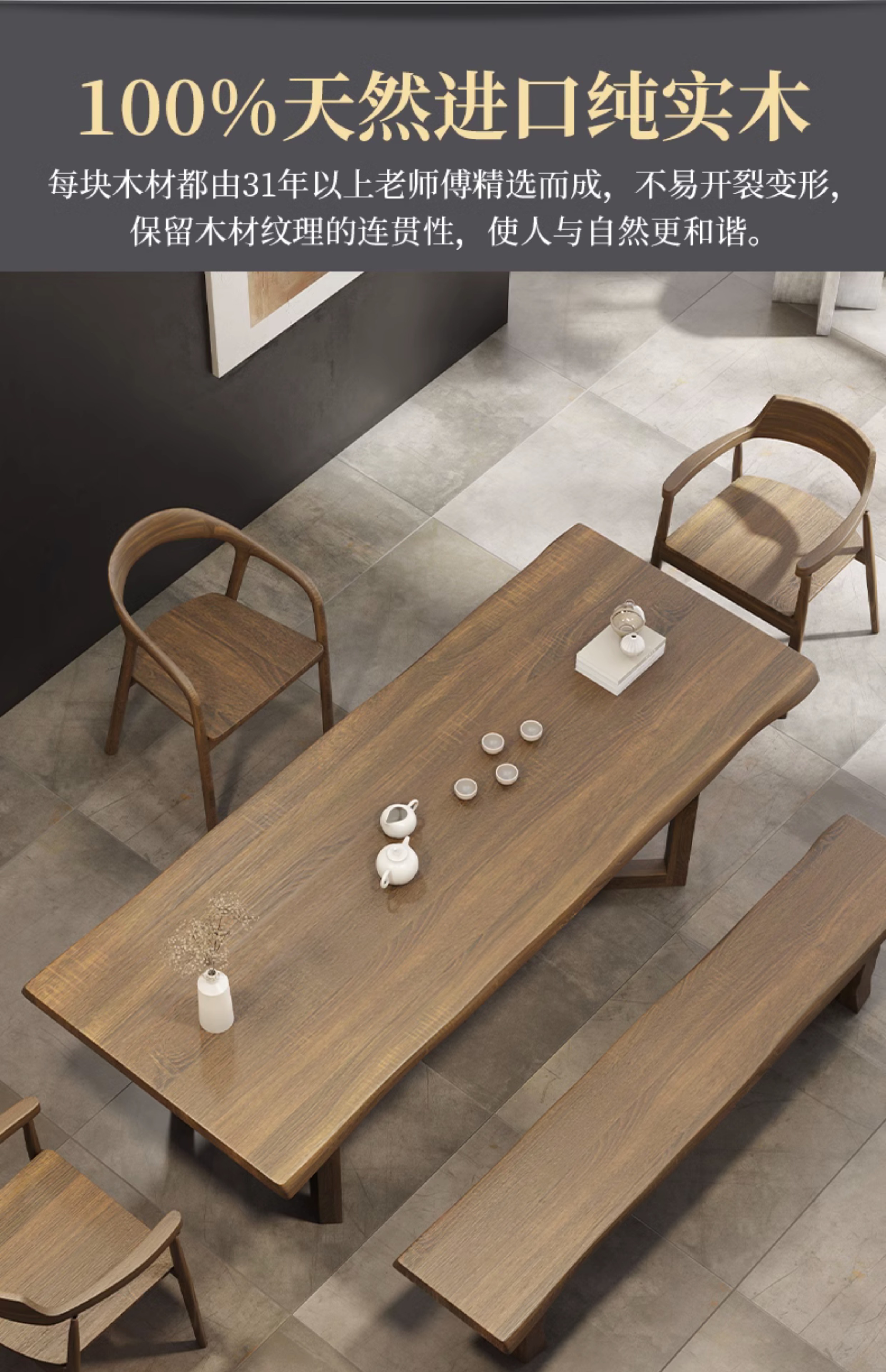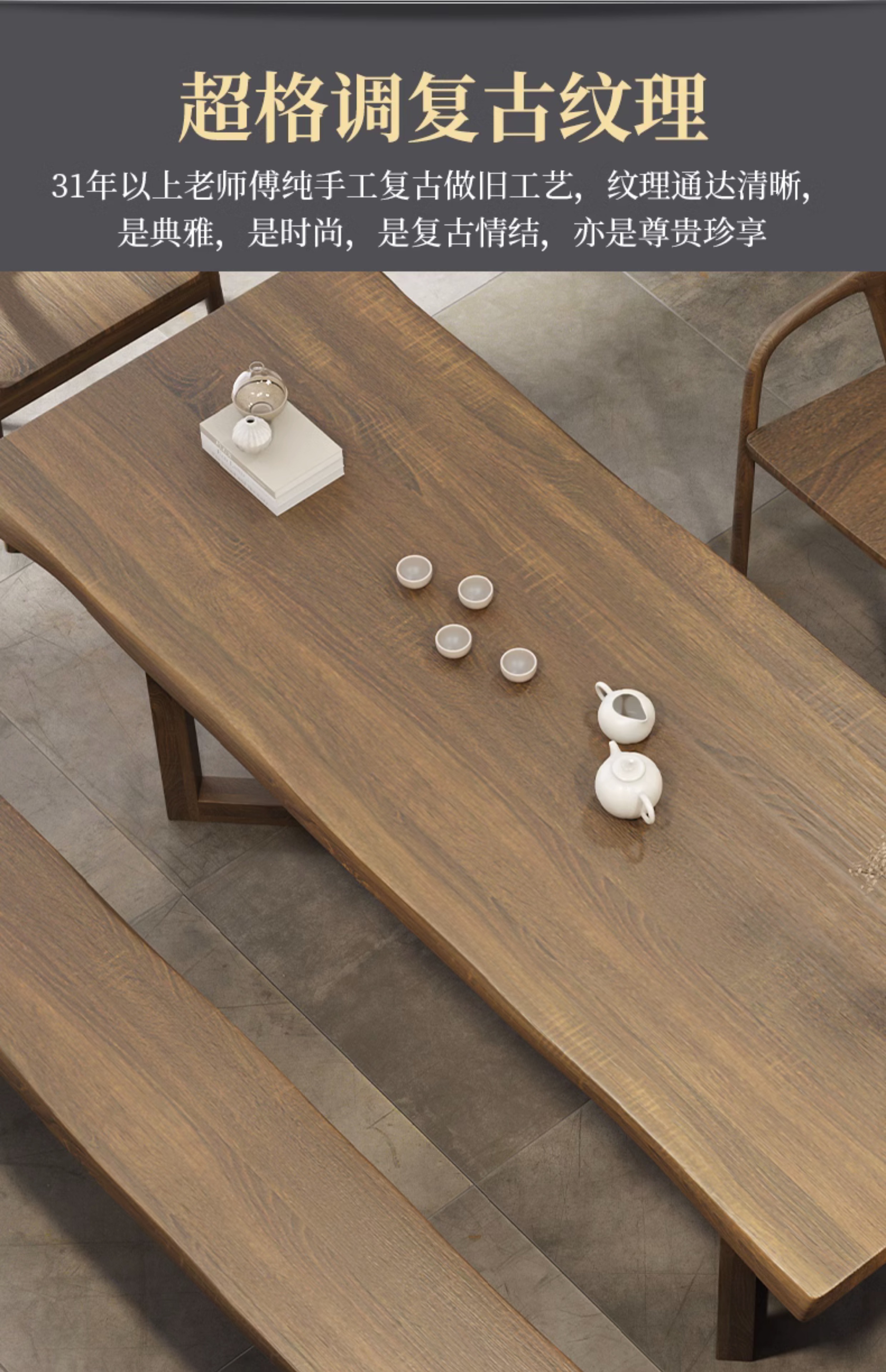Tất cả các loại bàn trà và ghế kết hợp bằng gỗ nguyên khối, một bàn và năm ghế, bàn trà lớn đơn giản và hiện đại, phòng khách bằng gỗ, bàn trà gia đình
