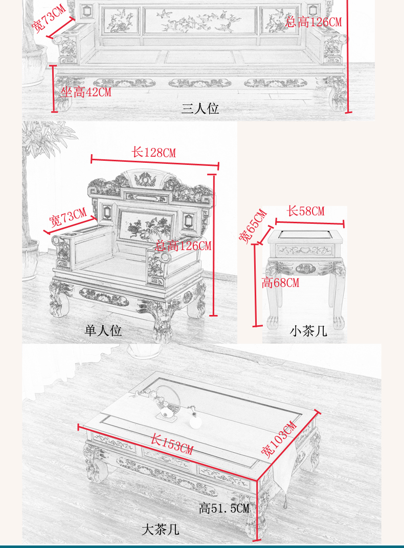 Tất cả gỗ nguyên khối 95 kết hợp ghế sofa tối cao Ghế sofa cổ phong cách Trung Quốc Căn hộ lớn nội thất phòng khách Cấu trúc mộng và mộng lắp ráp hoàn chỉnh