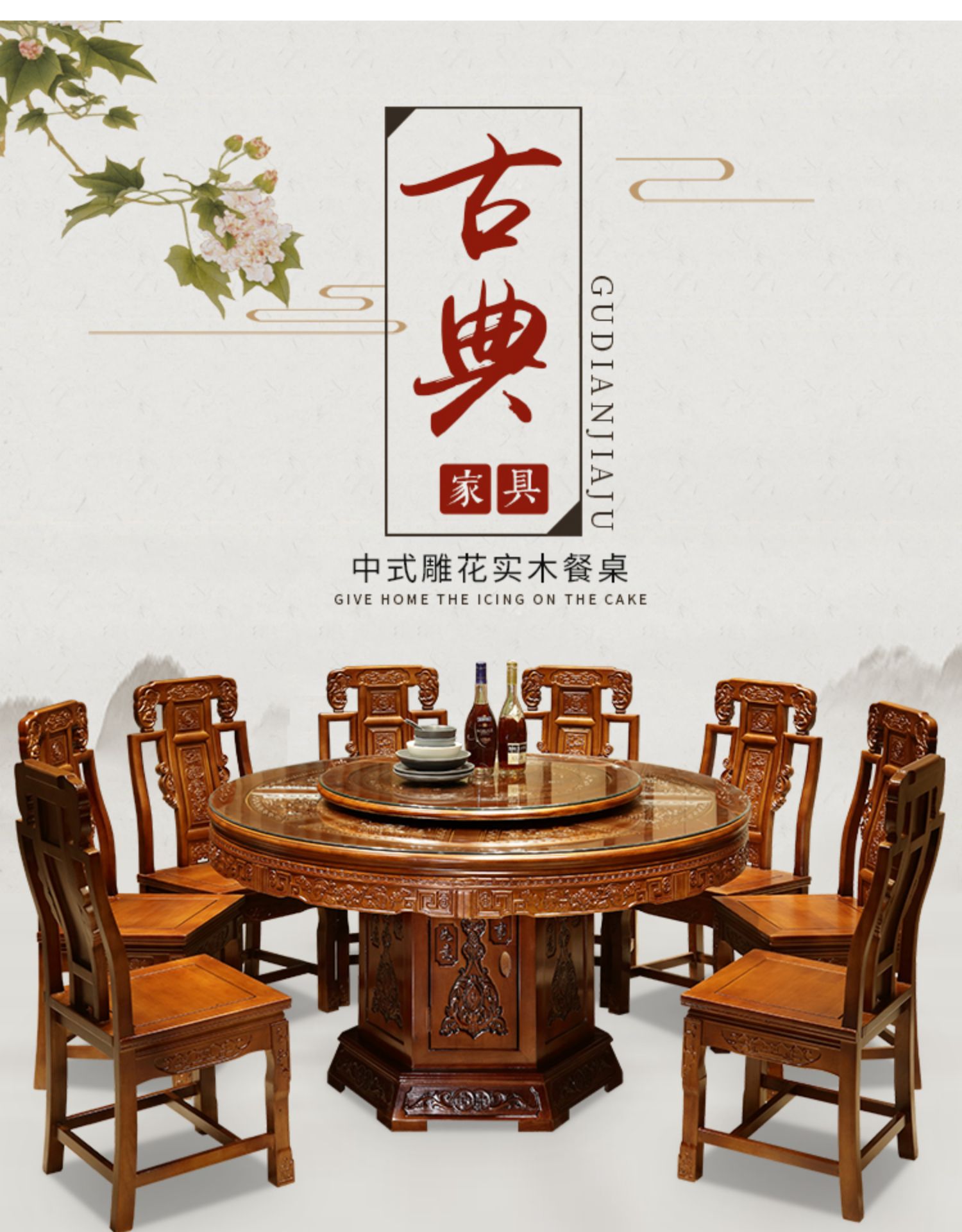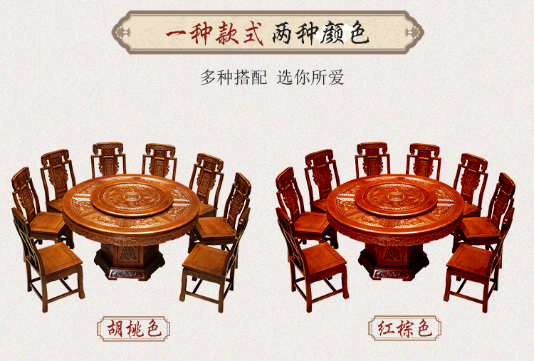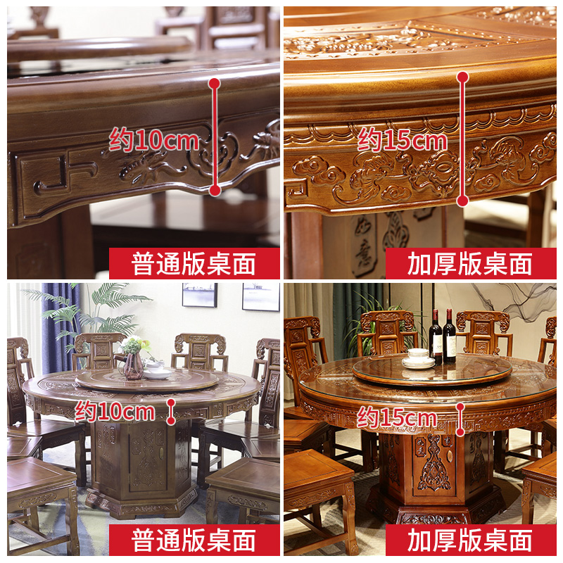 Tất cả gỗ nguyên khối Bàn ăn Trung Quốc và ghế kết hợp với bàn xoay bàn tròn lớn bàn ăn gia đình bàn ăn gỗ cao su chạm khắc cổ bàn ăn – Bàn ăn nhập khẩu cao cấp