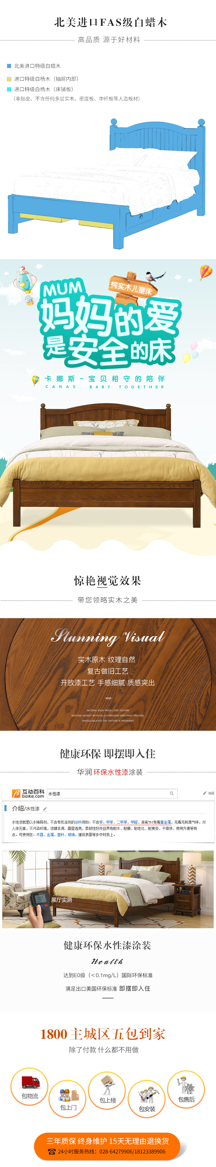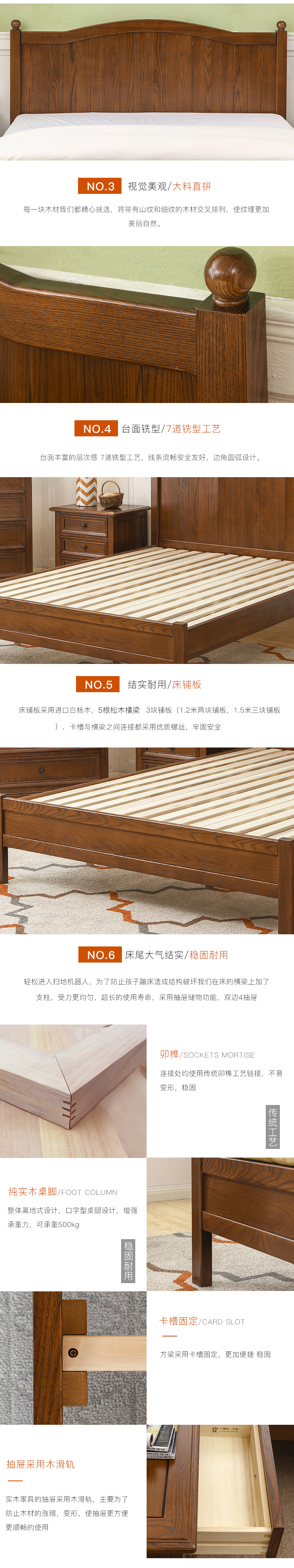 Tất cả gỗ nguyên khối Đất nước Mỹ 1,5m giường đôi phòng ngủ nông thôn đơn 1,2m giường trẻ em nội thất gỗ tần bì