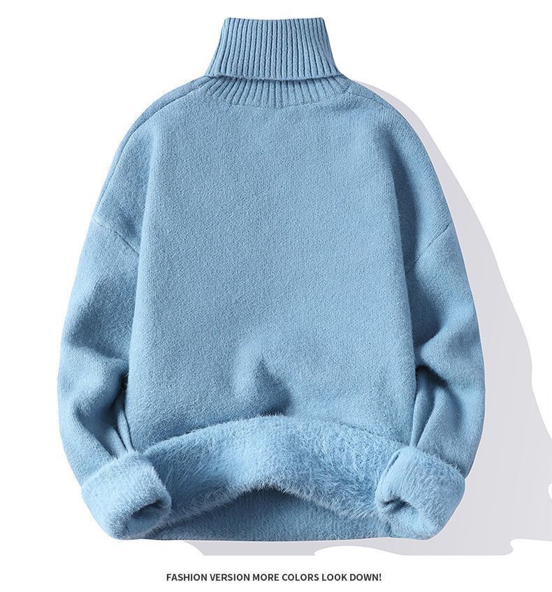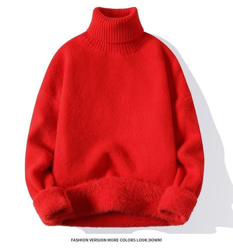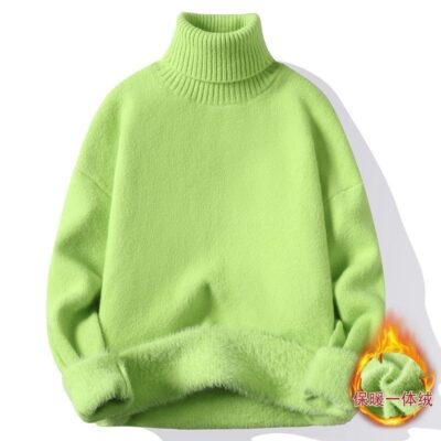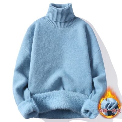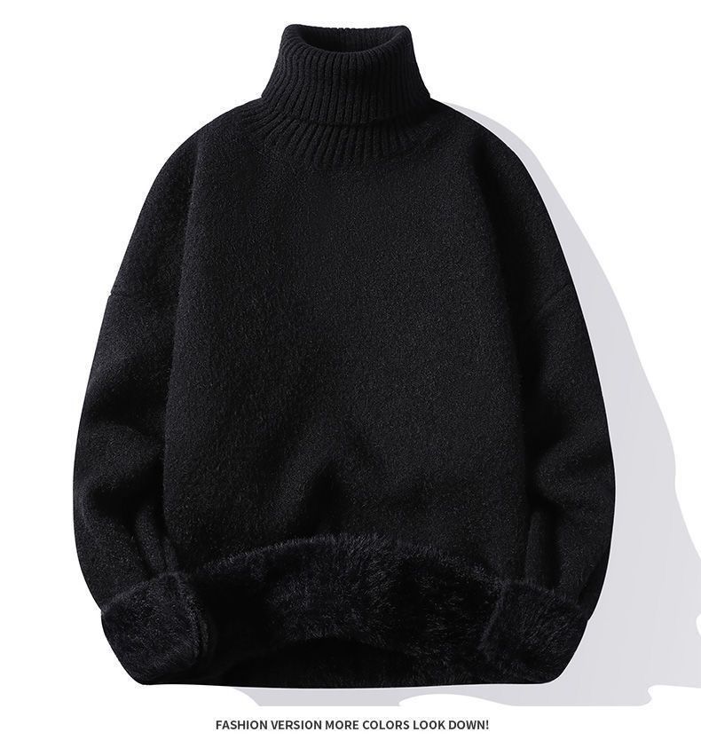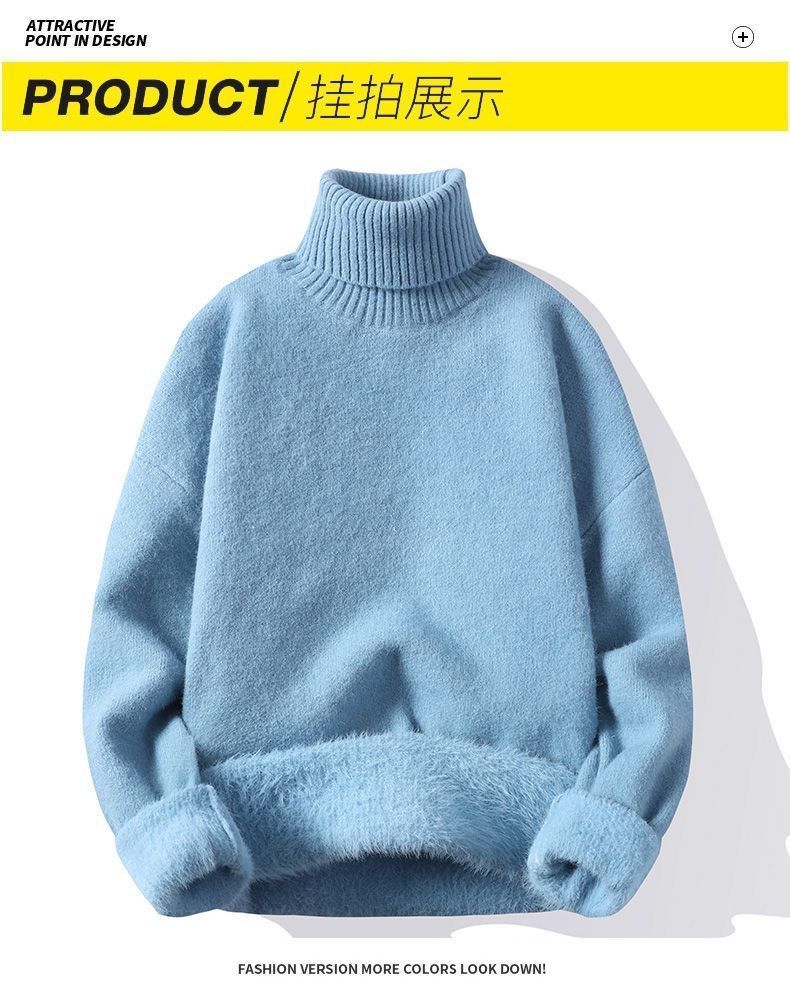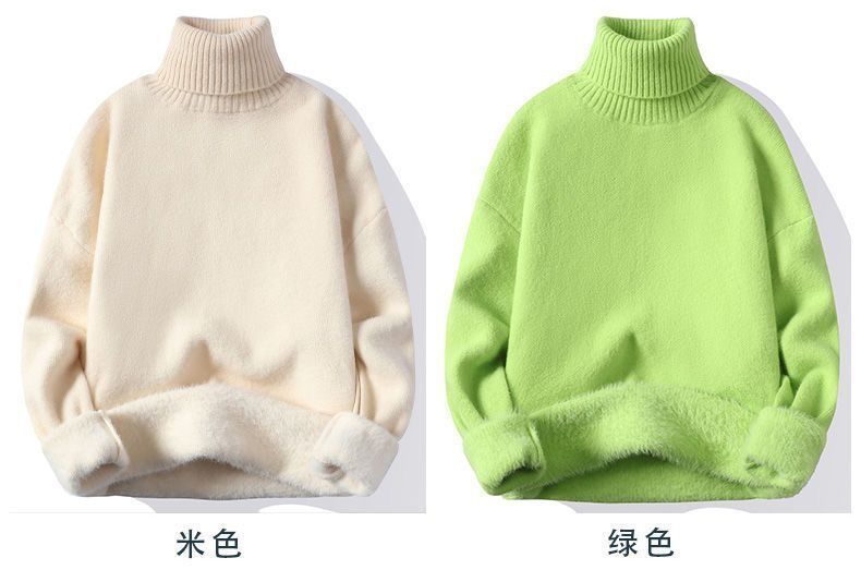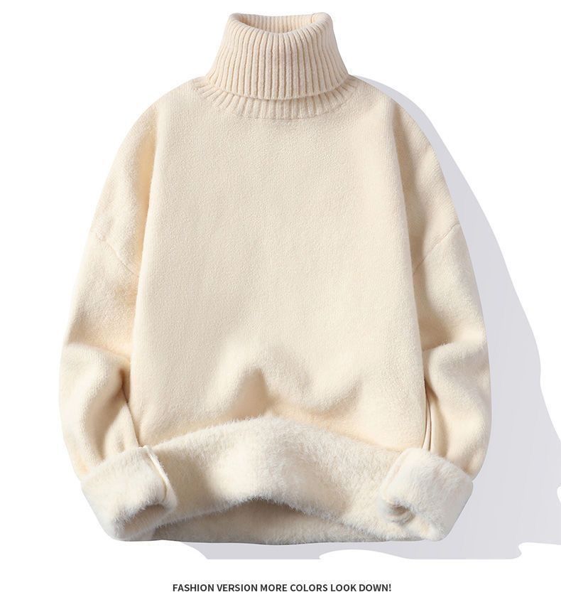 Tất cả trong một áo len lông cừu lông cừu dày cho nam Áo len cao cổ áo len mùa thu và mùa đông ấm áo sơ mi có đáy rộng