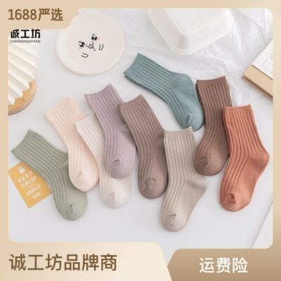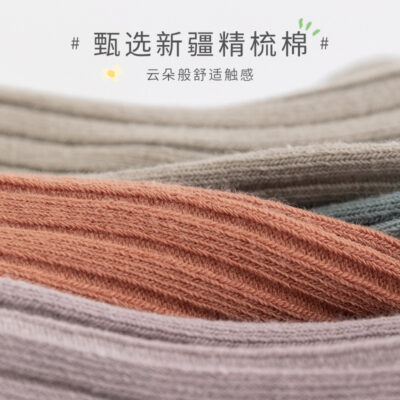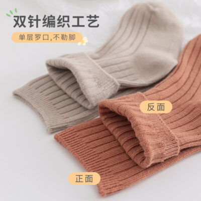 Tất trẻ em mới, phiên bản Hàn Quốc, tất ống giữa, kim đôi, chân không xương, tất cotton chải kỹ cho bé, tất Zhuji, trẻ em