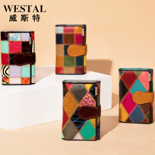 | 优雅女士手工包短款钱包 彩色拼接零钱包 多卡位头层牛皮钱夹批发 |