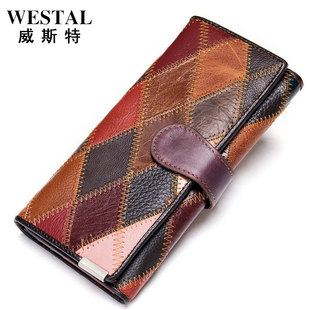 | 女士手拿钱包 女长款彩色拼接零钱包 女式拉链手机包真皮钱夹批发 |