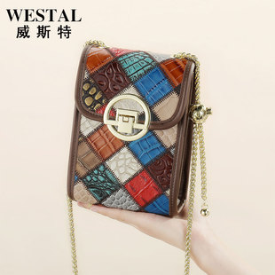 | 真皮包包女小众新款女士民族风单肩斜挎包个性休闲牛皮拼接手机包 |
