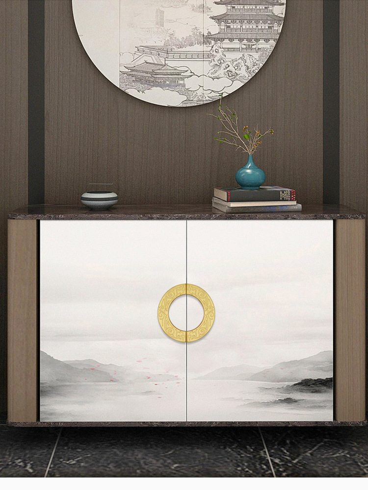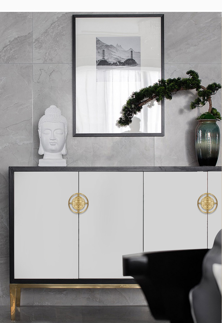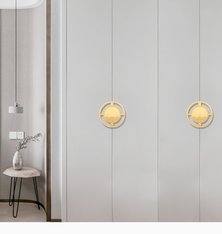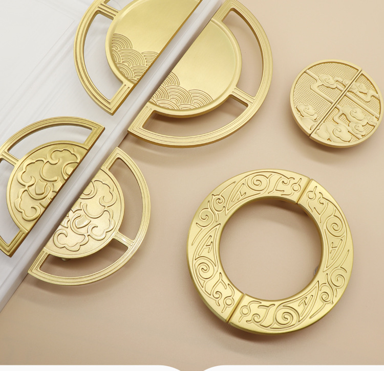 Tay cầm bằng đồng thau cửa tủ quần áo bằng đồng nguyên chất đối diện hiện đại tối giản phong cách Trung Quốc mới ngăn kéo tủ chắc chắn tay nắm cửa đám mây tốt lành