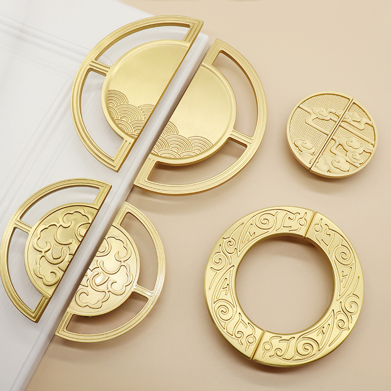 Tay cầm bằng đồng thau cửa tủ quần áo bằng đồng nguyên chất đối diện hiện đại tối giản phong cách Trung Quốc mới ngăn kéo tủ chắc chắn tay nắm cửa đám mây tốt lành
