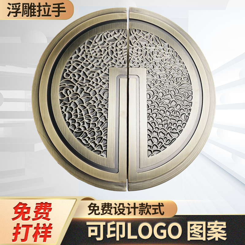 Tay cầm dập nổi có thể tùy chỉnh có thể in logo tay cầm cửa thủ công sang trọng tay cầm chạm khắc bằng đồng tay cầm khách sạn