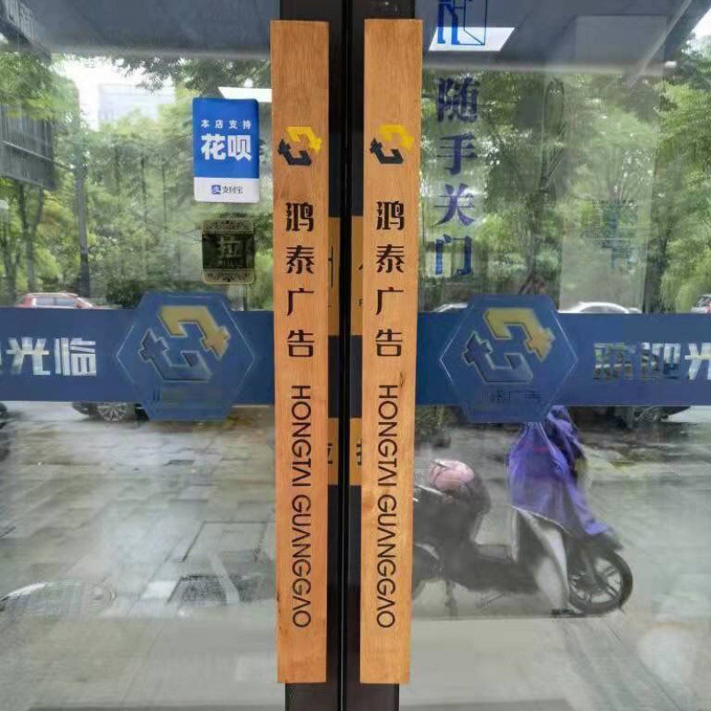 Tay cầm gỗ chắc chắn Tay nắm cửa kính Trung Quốc khắc cửa hàng khách sạn đăng nhập LOGO lớn khắc một mảnh Bán buôn