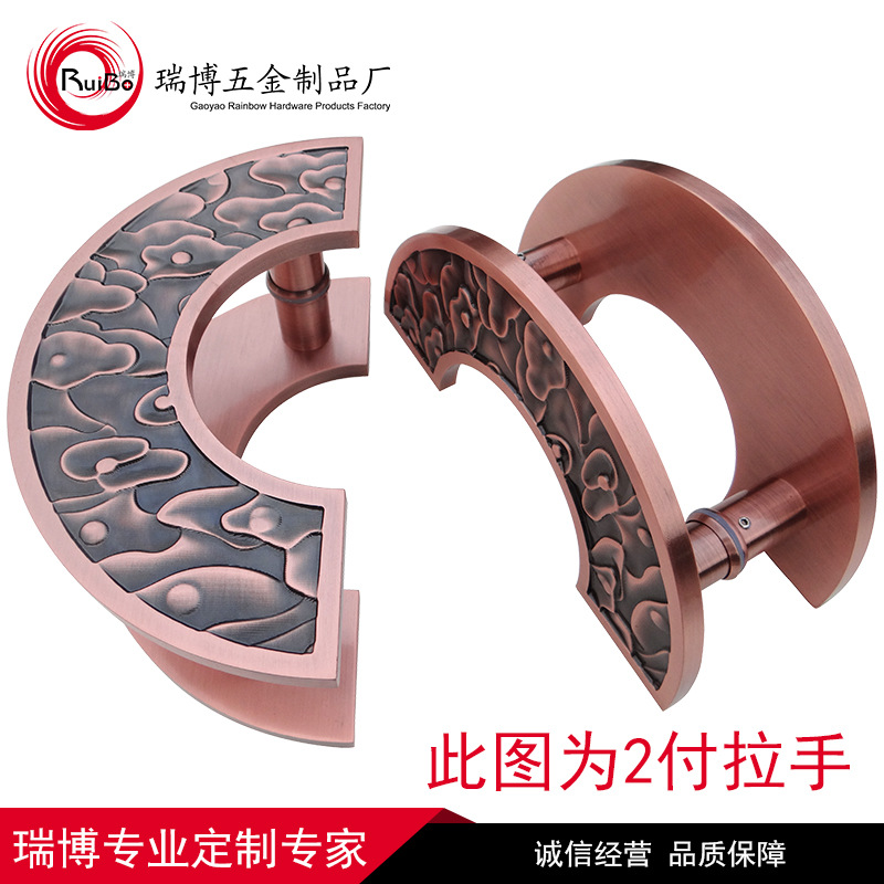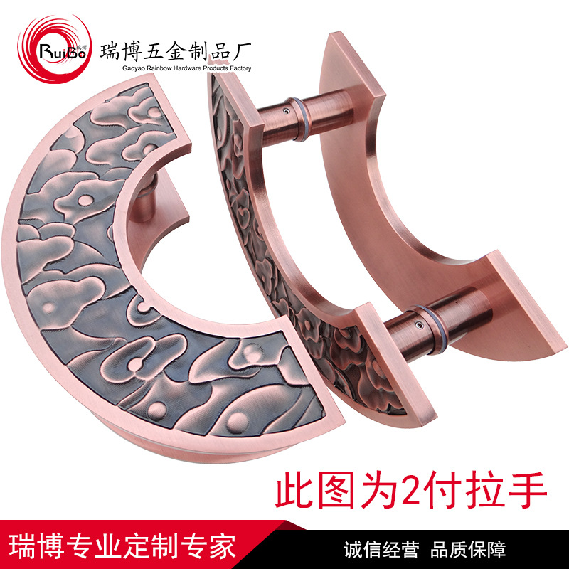 Tay cầm hình bán nguyệt bằng nhôm khắc cửa hàng kiểu Trung Quốc mới tay nắm cửa kính cổ tấm nhôm nguyên khối tay cầm khắc