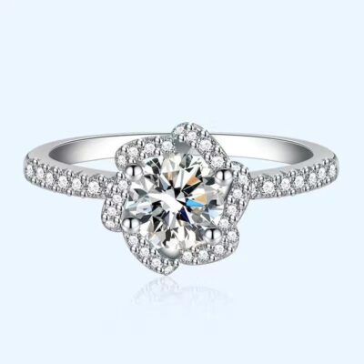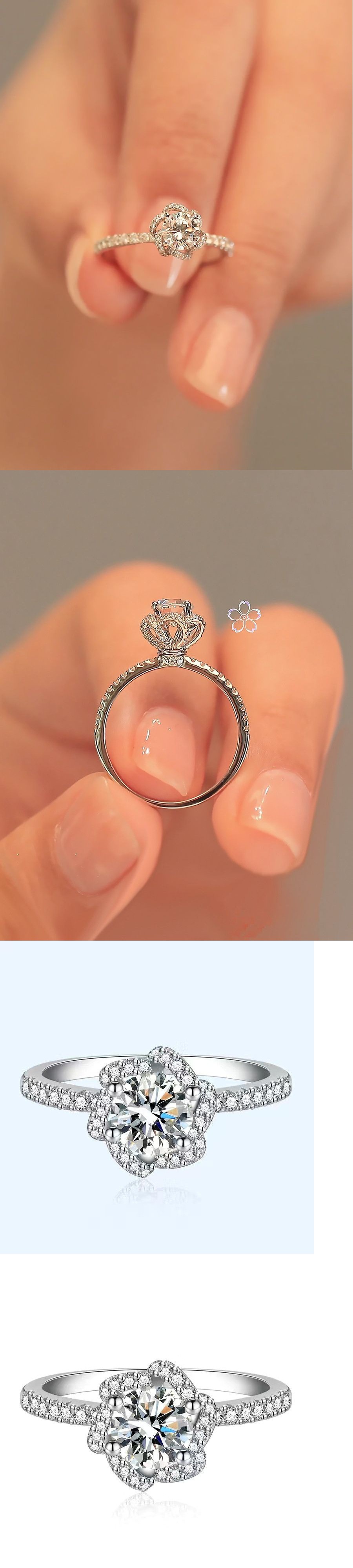Tay cầm nhẫn hoa kim cương 50 điểm 1 carat ngậm miệng Nhẫn hoa Moissanite cặp đôi nhẫn nam nữ cầu hôn bán buôn