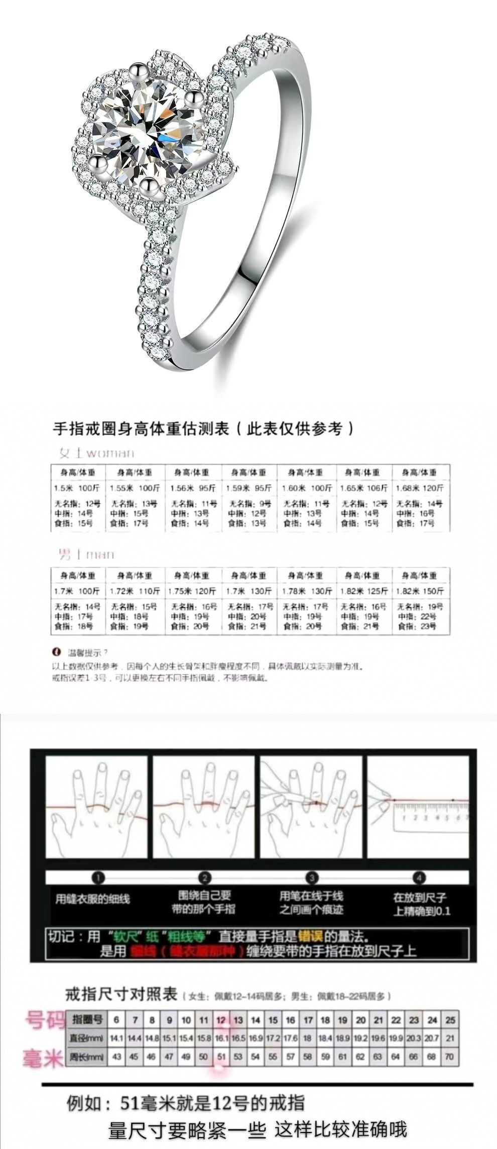 Tay cầm nhẫn hoa kim cương 50 điểm 1 carat ngậm miệng Nhẫn hoa Moissanite cặp đôi nhẫn nam nữ cầu hôn bán buôn