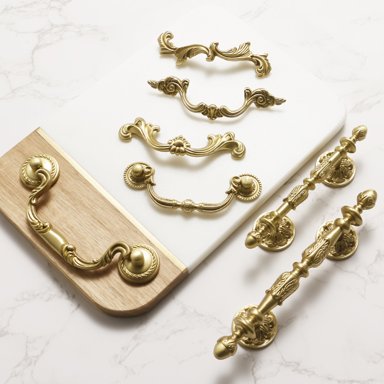 Tay nắm bằng đồng sang trọng kiểu Pháp tay nắm tủ quần áo kiểu Mỹ ngăn kéo tủ quần áo nhà bếp Châu Âu retro vàng nguyên chất đồ nội thất bằng đồng nguyên chất tay nắm cửa