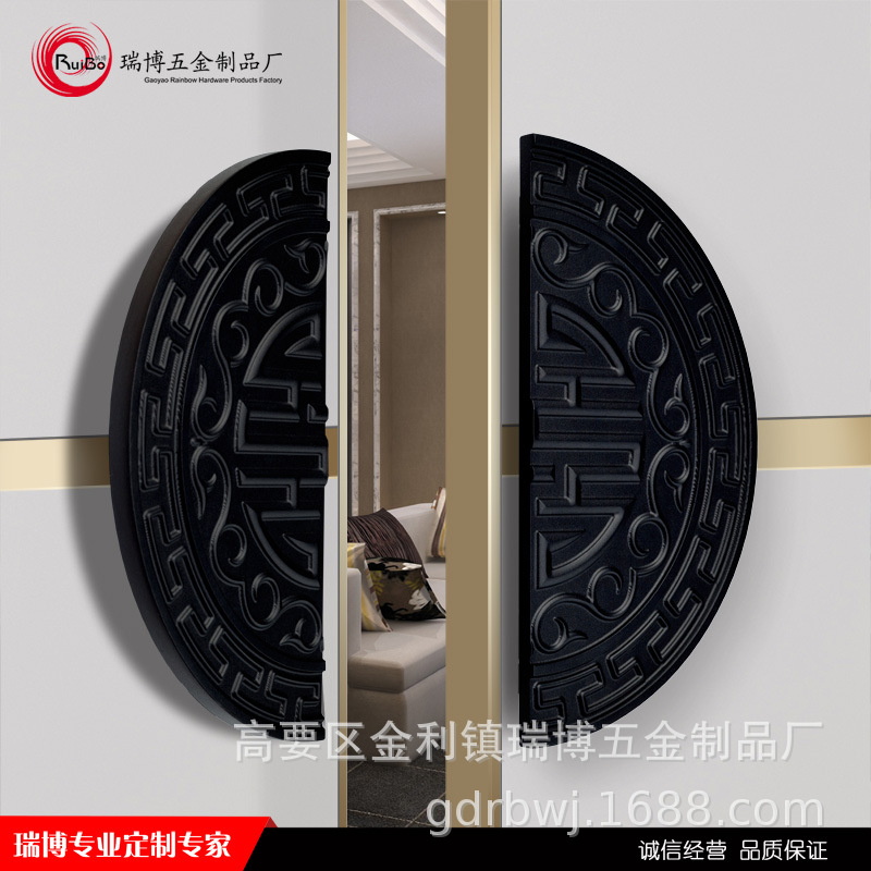 Tay nắm cửa bằng đồng chạm khắc cửa kính phong cách Trung Hoa tay nắm cửa bằng nhôm nguyên khối ghép nối tay cầm hình bán nguyệt