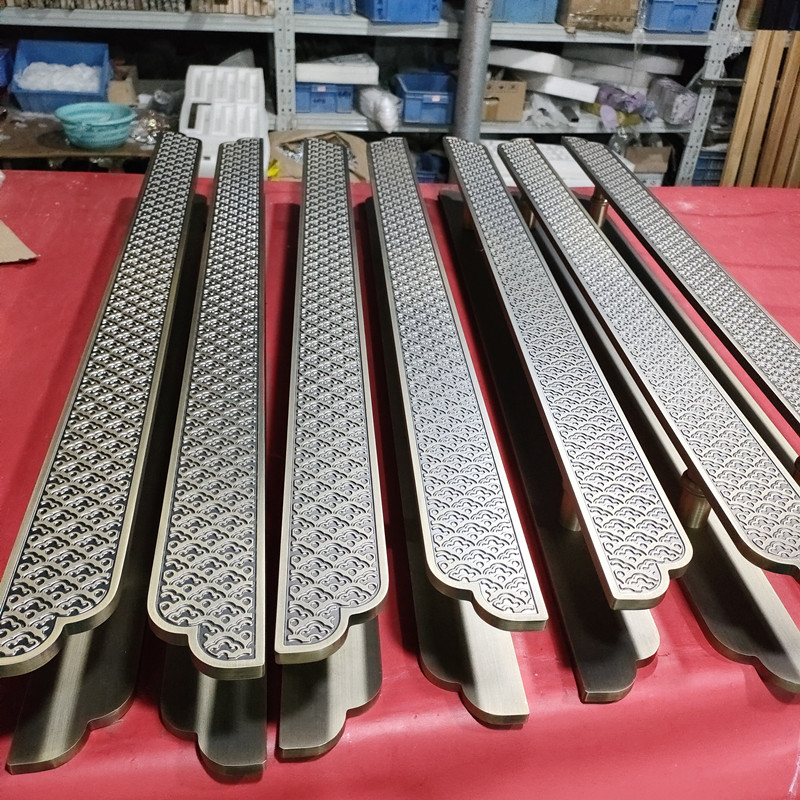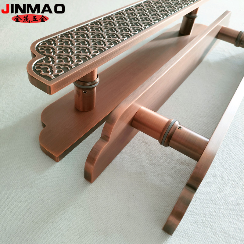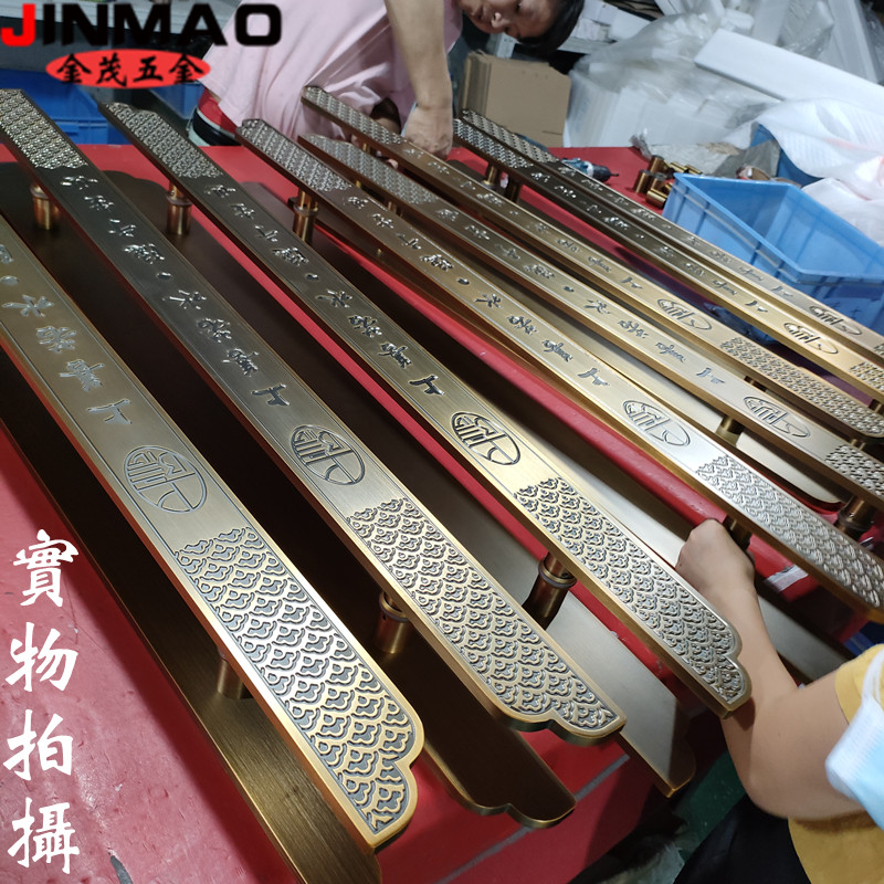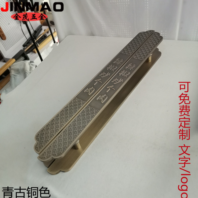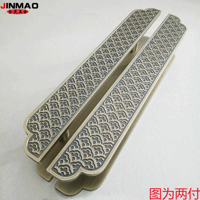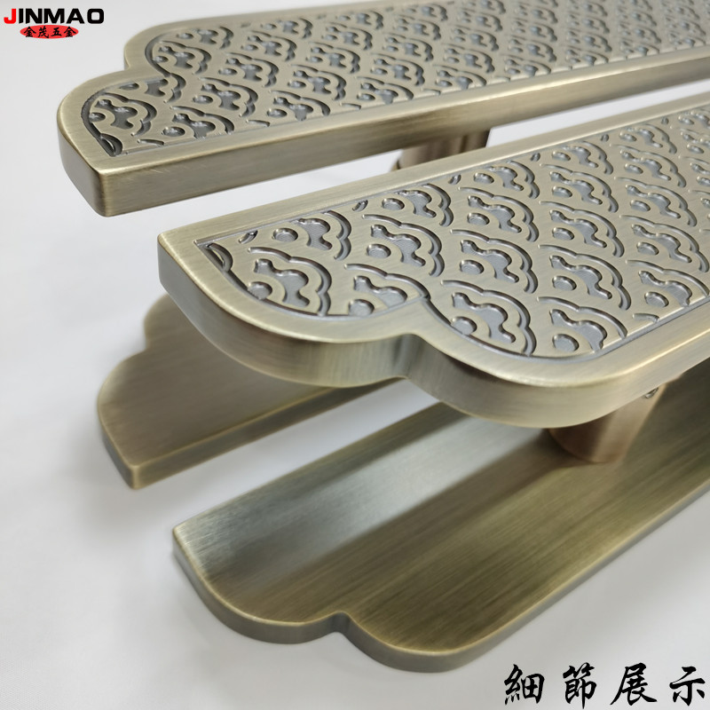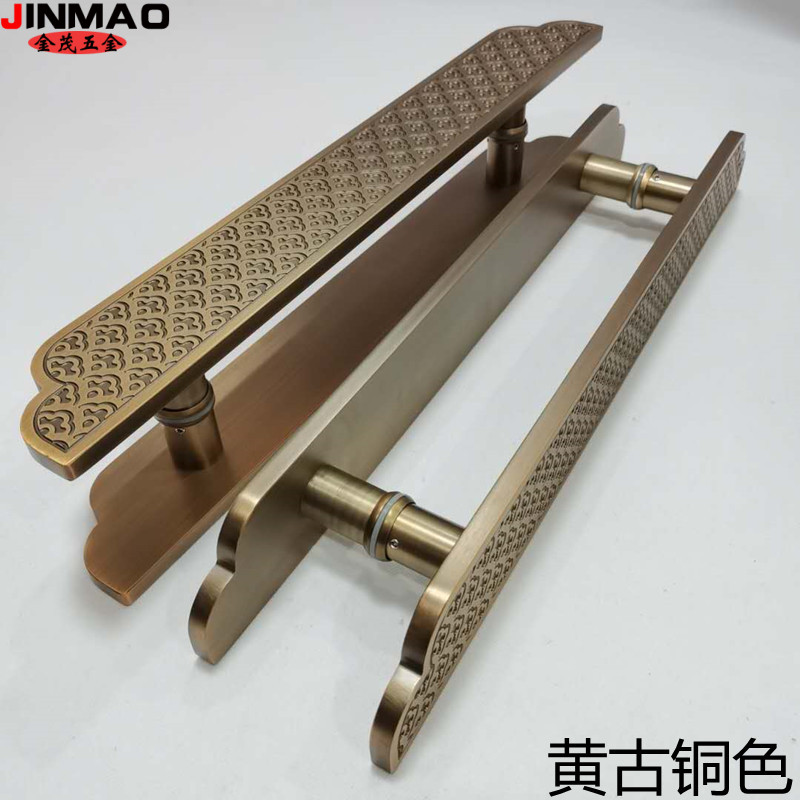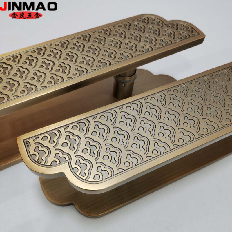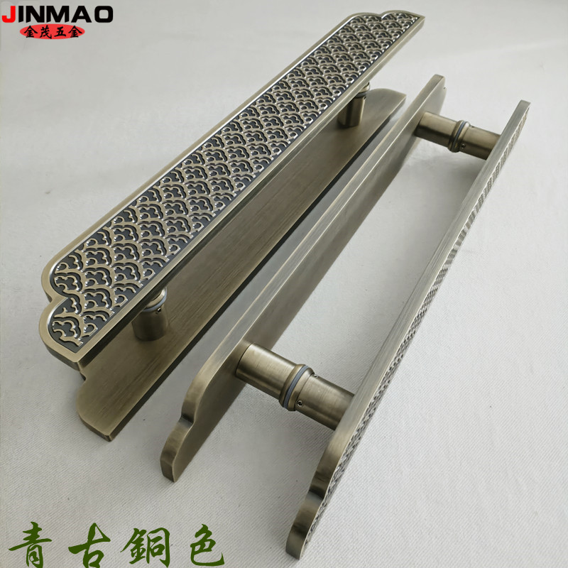 Tay nắm cửa bằng đồng cổ kiểu Trung Quốc mới Cửa kính hiện đại tay nắm cửa trượt khách sạn Cửa gỗ rắn tay nắm cửa kim loại