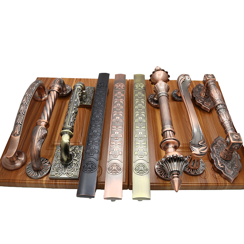 Tay nắm cửa bằng gỗ và đồng cổ theo phong cách châu Âu, tay nắm cửa cặp biệt thự, tay nắm cửa cổ điển, căn hộ, khách sạn, tay cầm lớn lộ ra ngoài
