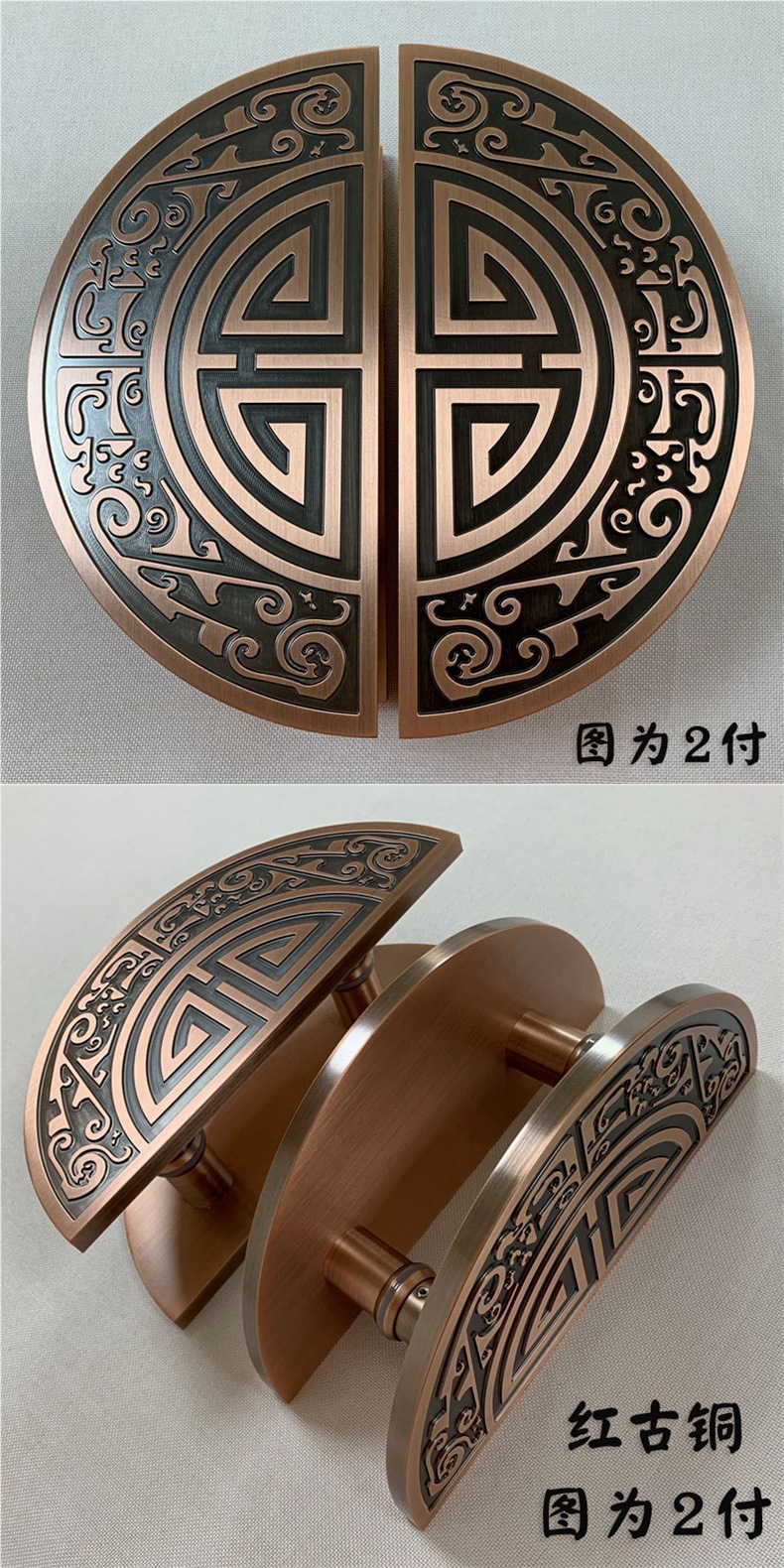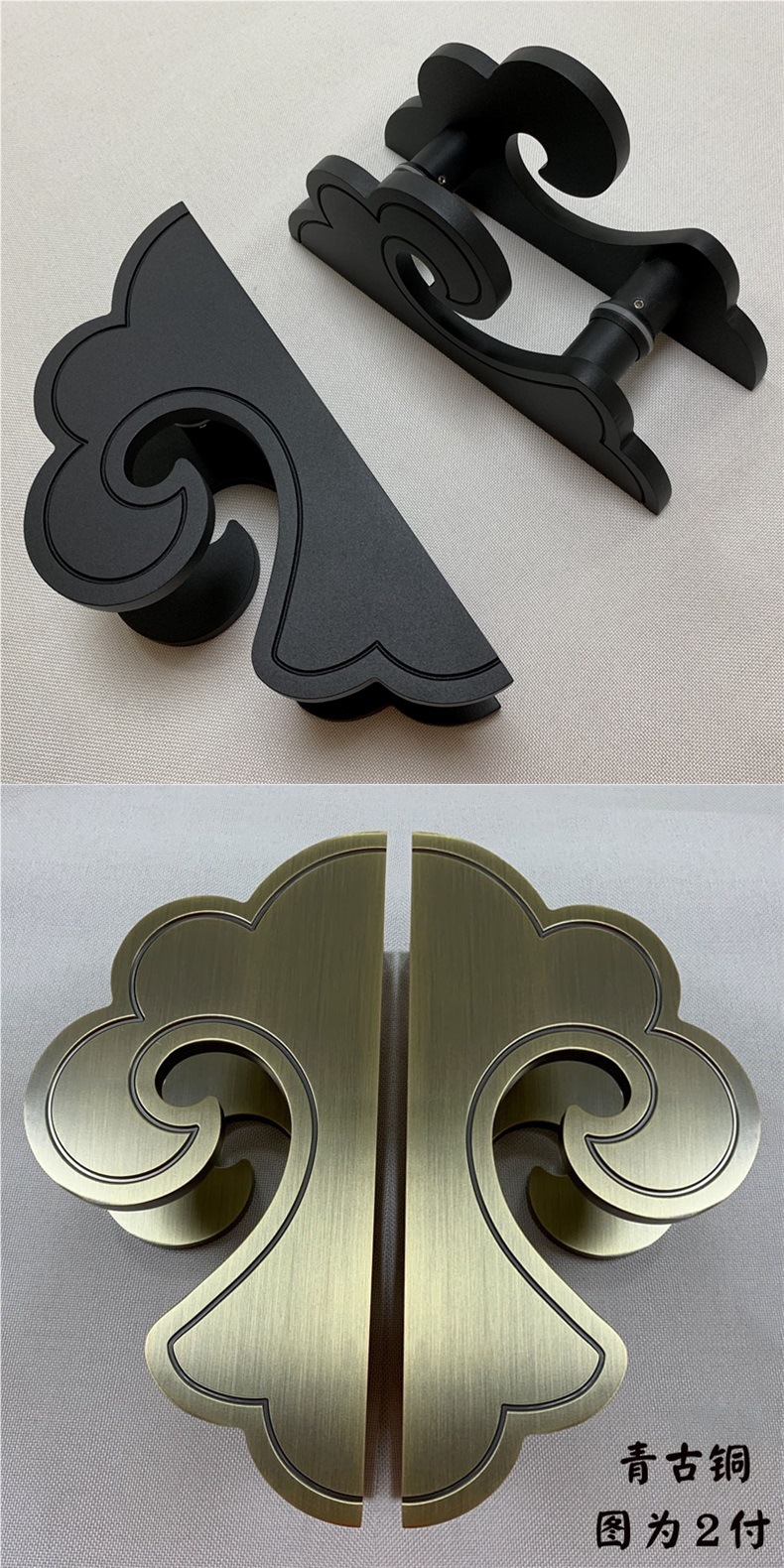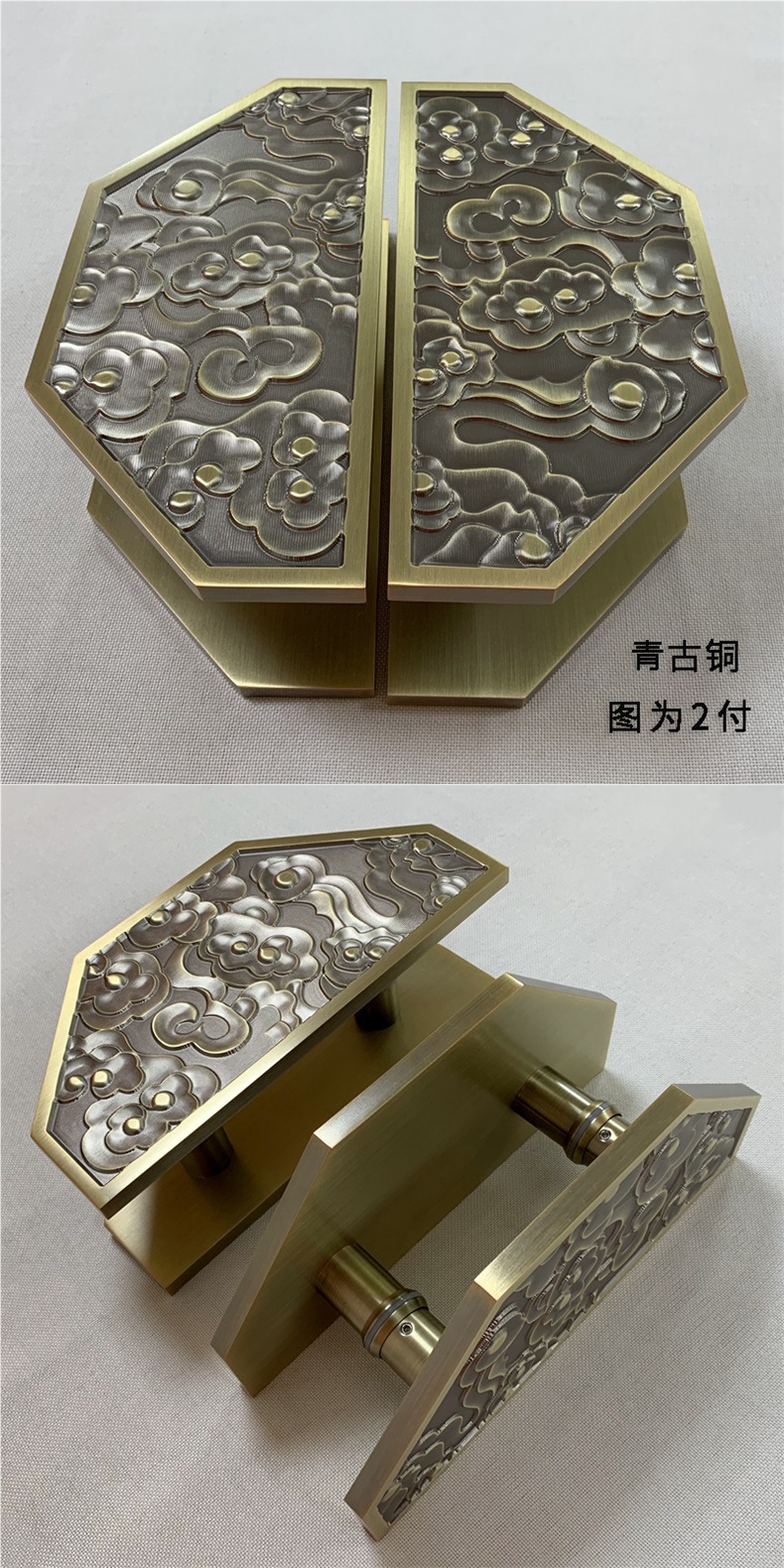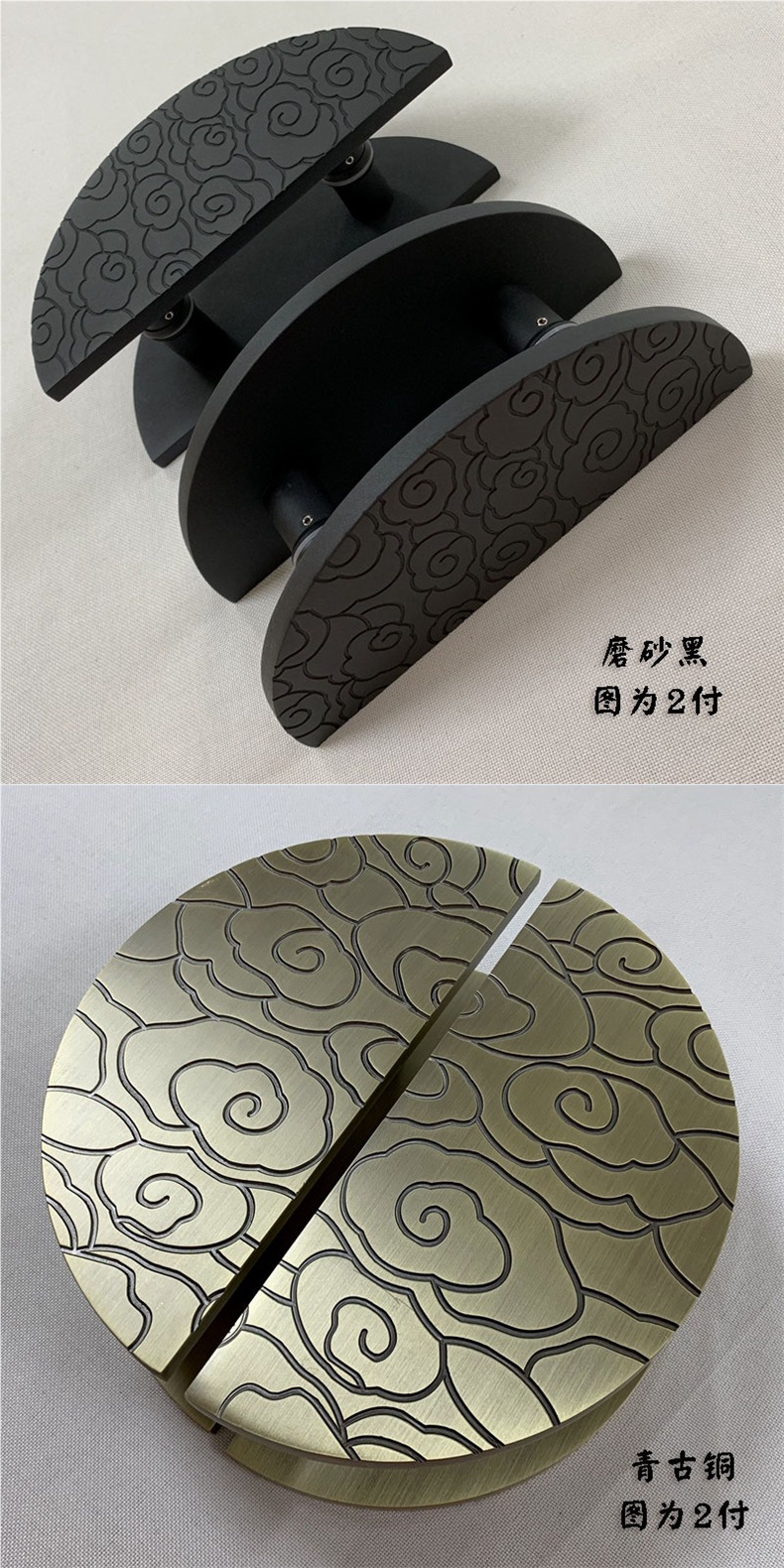 Tay nắm cửa bằng kính cường lực không khung hình bán nguyệt cổ kiểu Trung Quốc chạm khắc đám mây tốt lành bằng đồng cửa gỗ cửa tủ tay nắm cửa