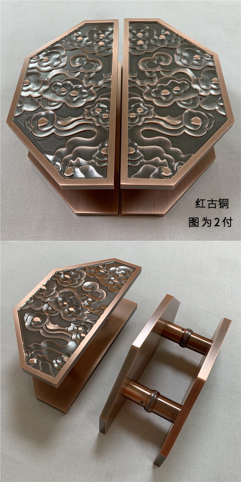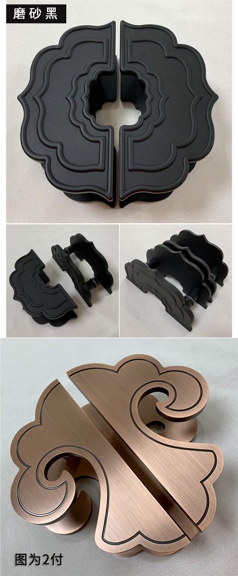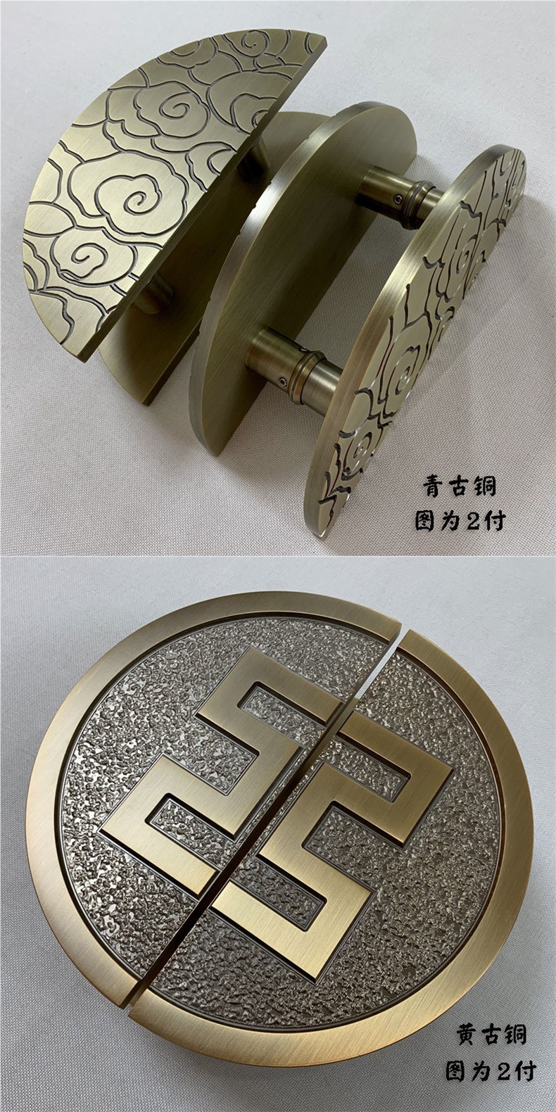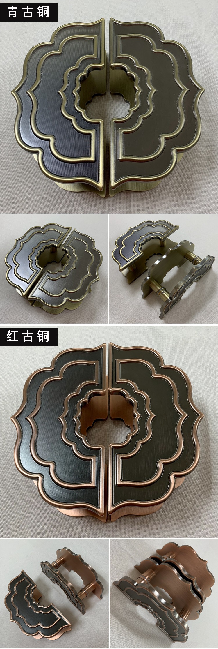 Tay nắm cửa bằng kính cường lực không khung hình bán nguyệt cổ kiểu Trung Quốc chạm khắc đám mây tốt lành bằng đồng cửa gỗ cửa tủ tay nắm cửa