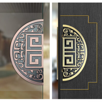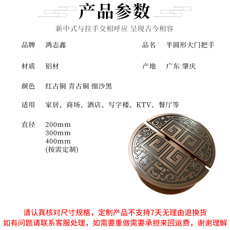 Tay nắm cửa hình bán nguyệt cổ Trung Quốc KTV tay nắm cửa kính kéo đẩy bằng đồng tròn tay nắm cửa gỗ nguyên khối