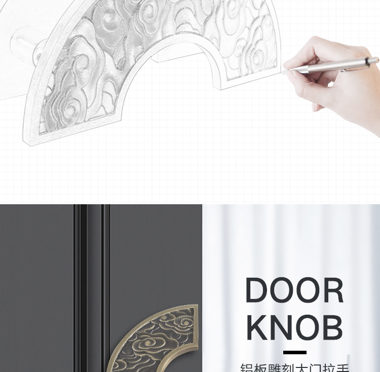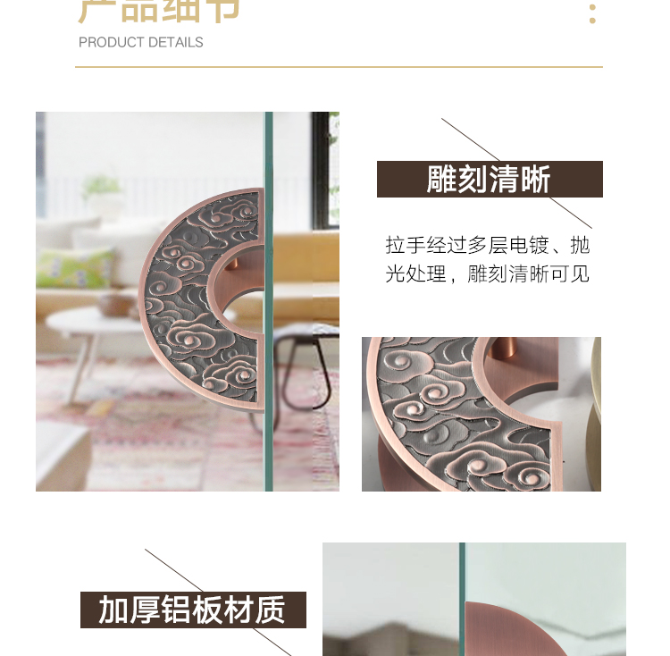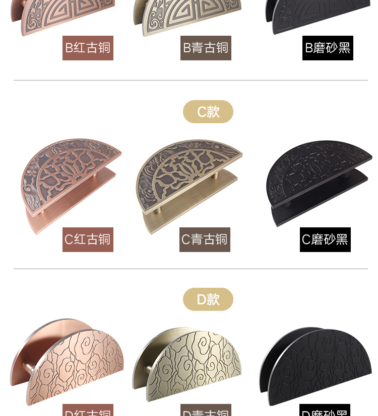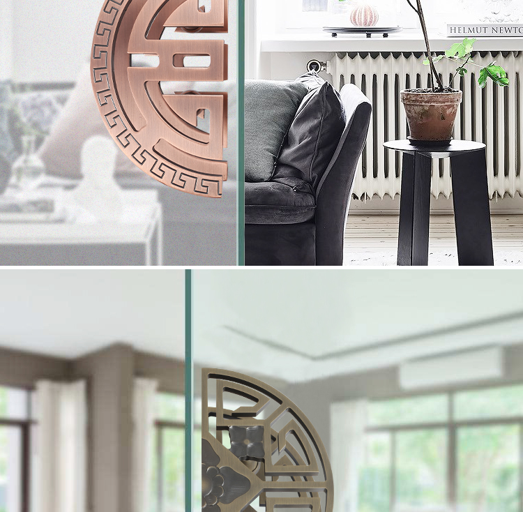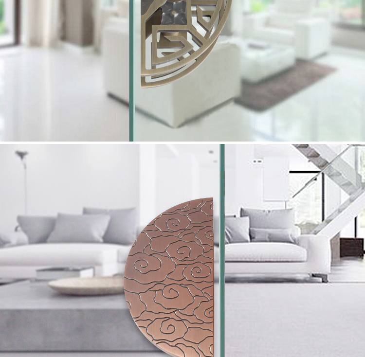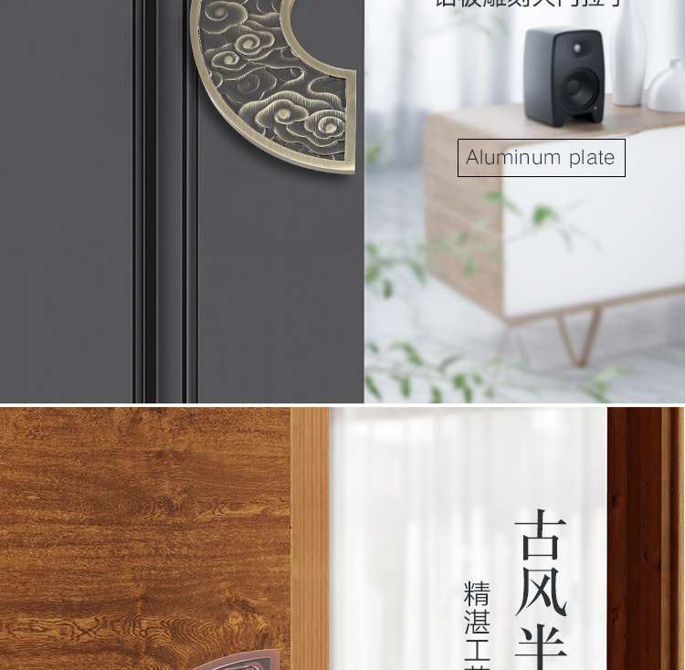 Tay nắm cửa hình bán nguyệt khắc chữ Trung Quốc cổ hình tay nắm cửa hình bán nguyệt cá tính tay nắm cửa kính sáng tạo