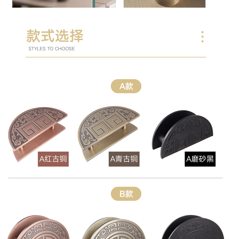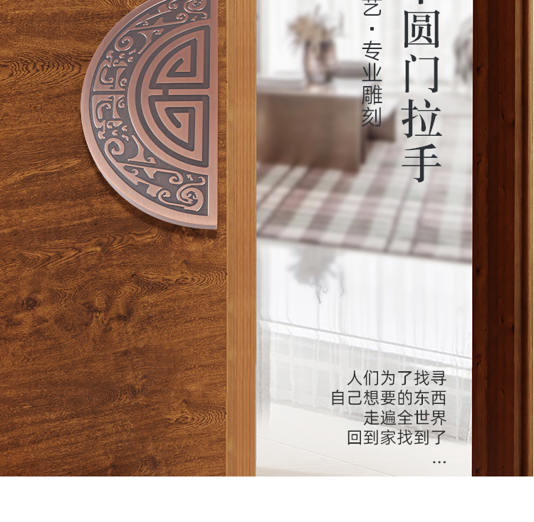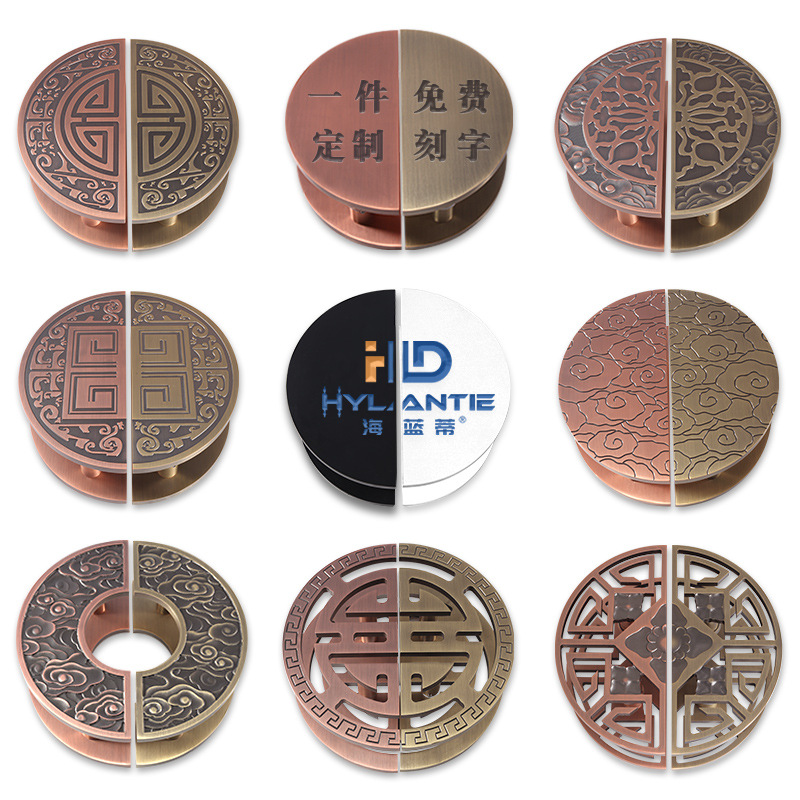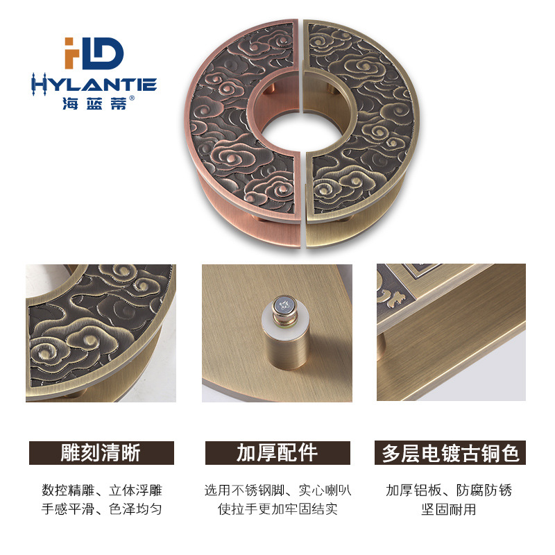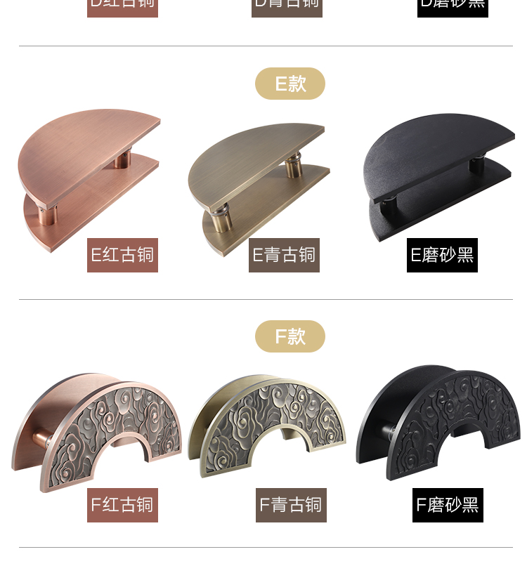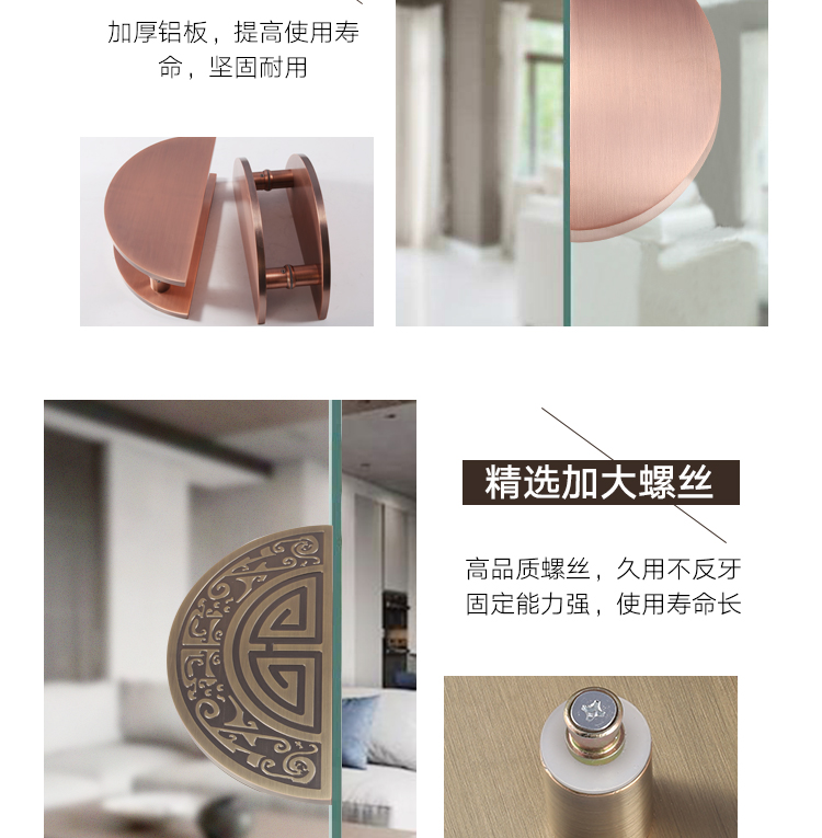 Tay nắm cửa hình bán nguyệt khắc chữ Trung Quốc cổ hình tay nắm cửa hình bán nguyệt cá tính tay nắm cửa kính sáng tạo