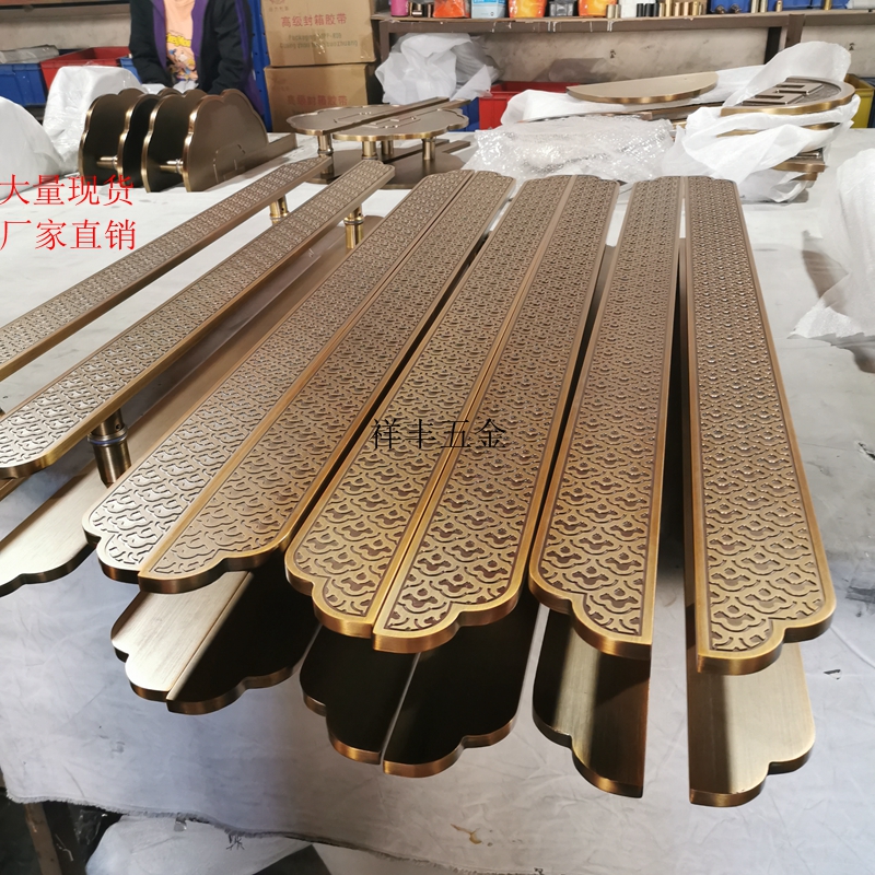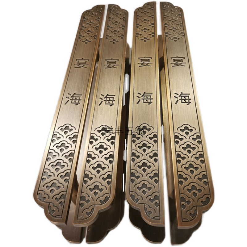 Tay nắm cửa kiểu cổ Trung Quốc bằng đồng màu đen cửa kính mở hai lần tay nắm cửa gỗ dài lan can chạm khắc mây tốt lành