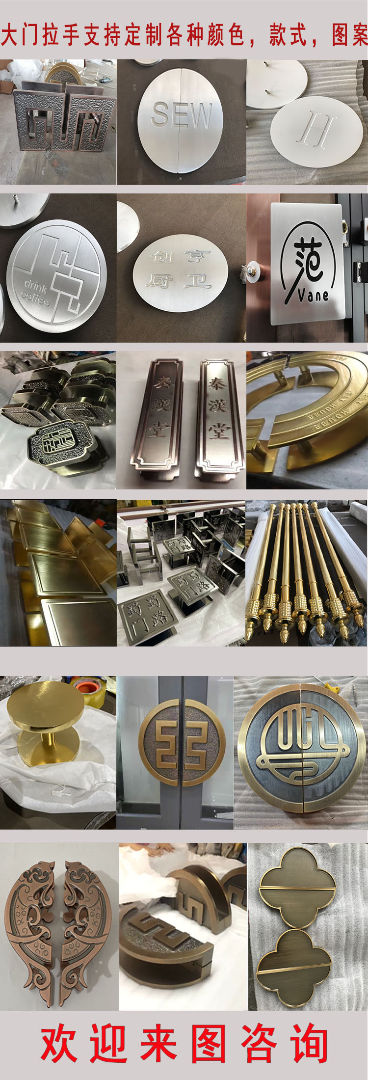 支持定制各种工艺拉手不锈钢拉手铝雕门拉手,贝壳水晶工艺拉手。异形门把手,孔距颜色尺寸均可定制,具体请联系客服咨询
