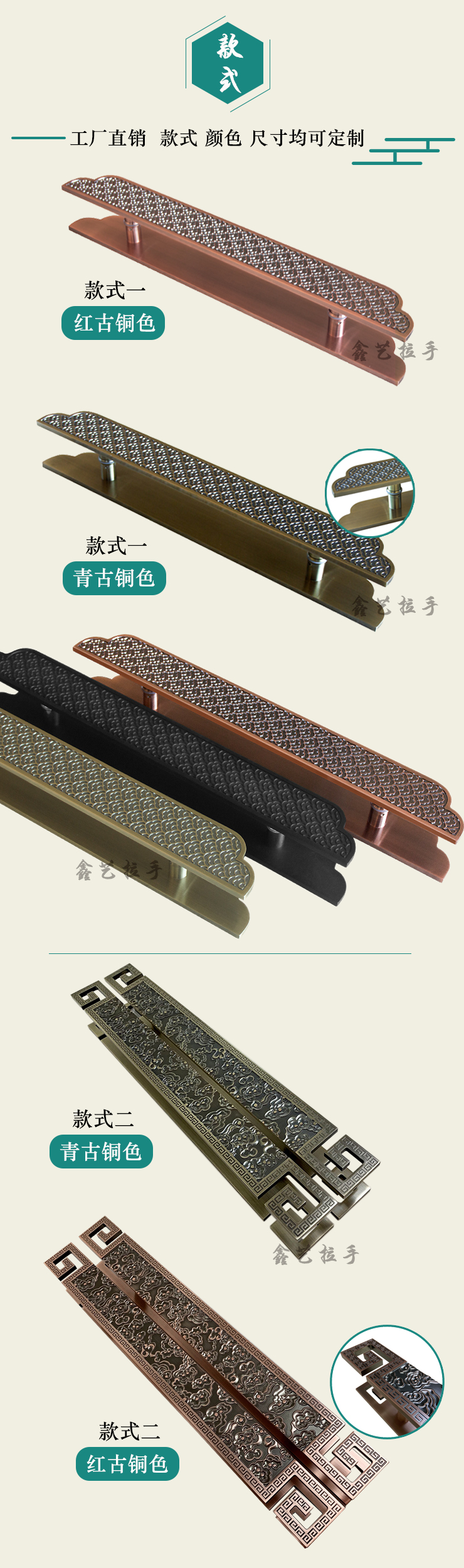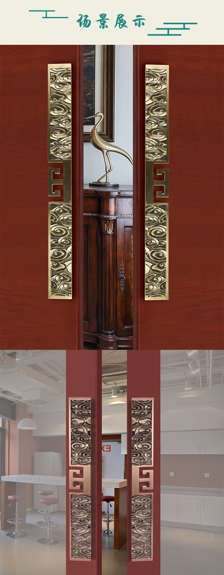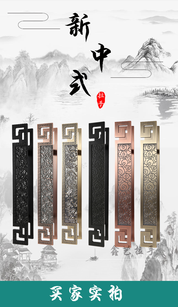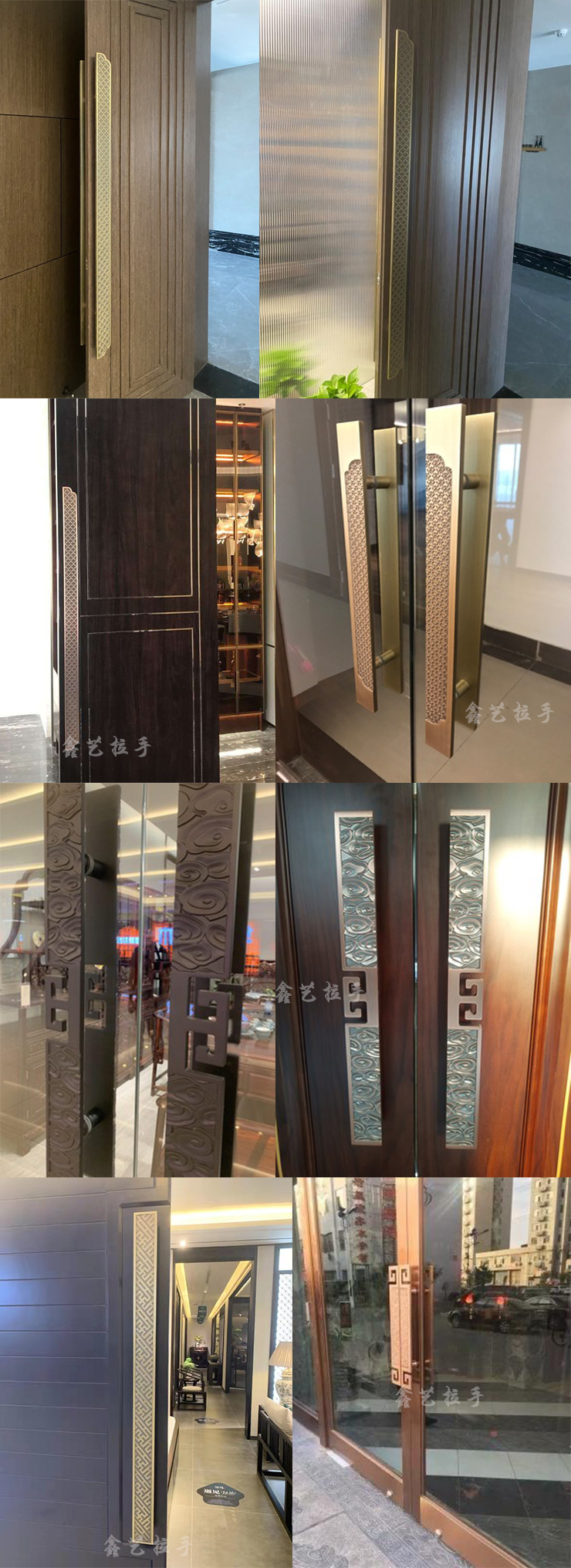 Tay nắm cửa kính bằng đồng cổ Trung Quốc tùy chỉnh tay nắm cửa câu lạc bộ khách sạn sang trọng chạm khắc lan can cửa gỗ Xiangyun