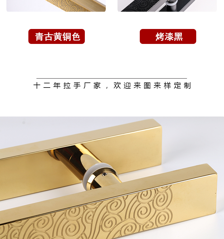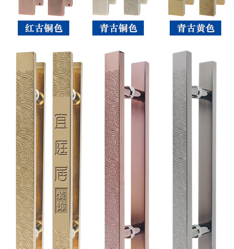 Tay nắm cửa kính bằng thép không gỉ bằng đồng gắn kết bằng đồng Xiangyun Ming kiểu Trung Quốc KTV cửa trượt Tay nắm cửa gỗ