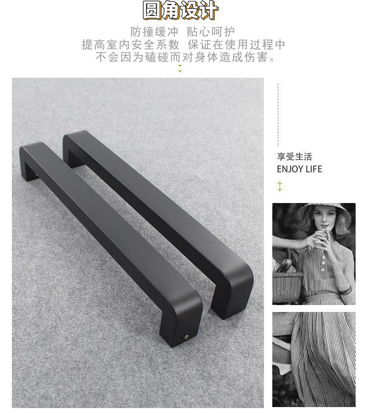 Tay nắm cửa kính bằng thép không gỉ dạng ống vuông tròn Cửa gỗ Tay nắm cửa màu đen Châu Á tay nắm cửa trượt dày