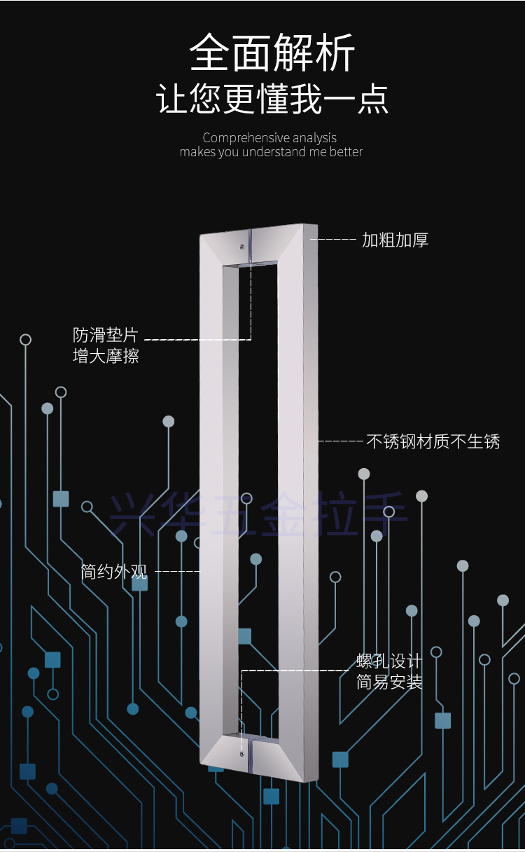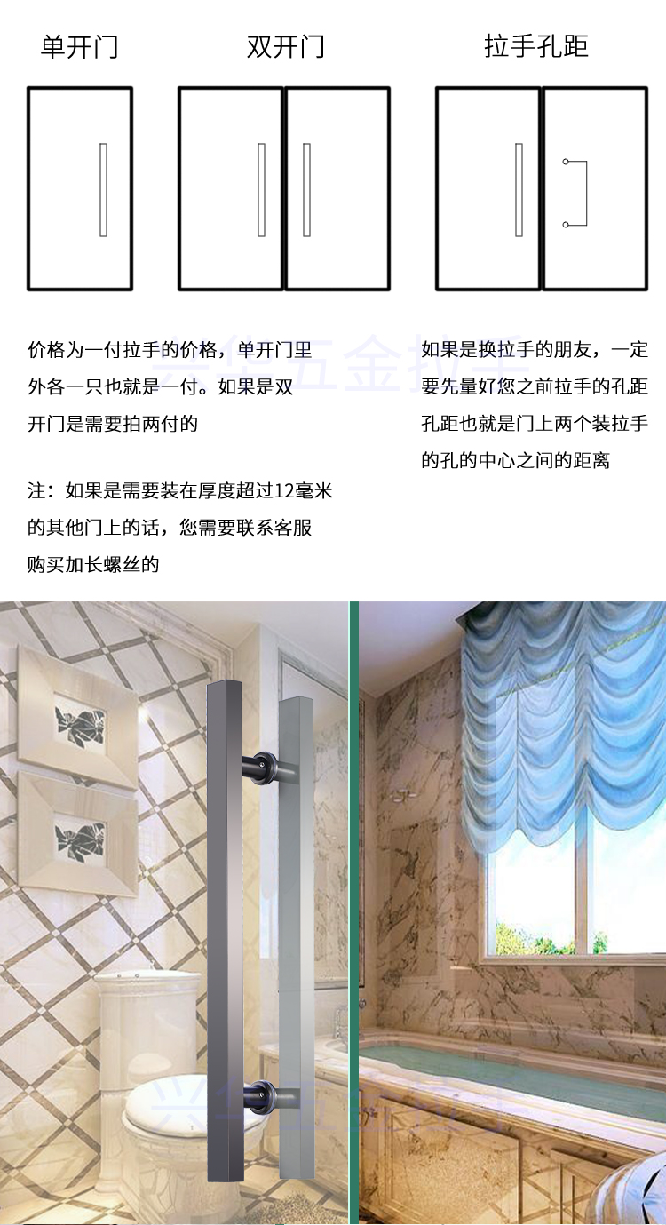 Tay nắm cửa kính bằng thép không gỉ tay nắm lớn ống vuông màu đen chải vàng hồng titan cửa đôi tay nắm cửa gỗ