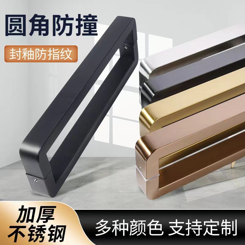 Tay nắm cửa kính bo tròn chống va chạm tay nắm cửa ống vuông inox có khung cửa tay nắm lớn vàng đen bán buôn