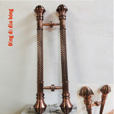 Dòng tay nắm sang trọng Rẻ nhất hiện nay, thiết kế Inox 304 cao cấp – Thiết kế thân xoắn đạn với hai đầu cúp bóng và màu đồng đỏ được sơn tĩnh điện đẹp mắt và bền.