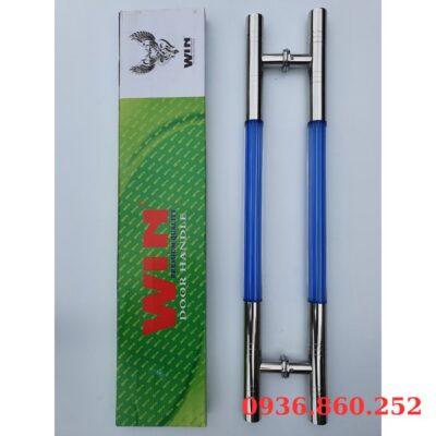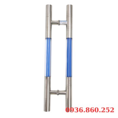 Dòng tay nắm sang trọng Rẻ nhất hiện nay, thiết kế 2 đầu Inox 304 cao cấp – Thân giữa Mica bên trong thiết kế sọc xanh dương lạ mắt