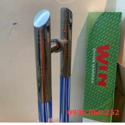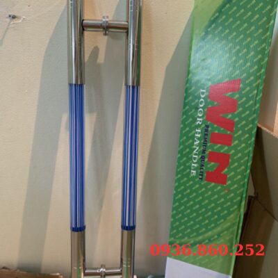 Dòng tay nắm sang trọng Rẻ nhất hiện nay, thiết kế 2 đầu Inox 304 cao cấp – Thân giữa Mica bên trong thiết kế sọc xanh dương lạ mắt, hai đầu vát trái xoài