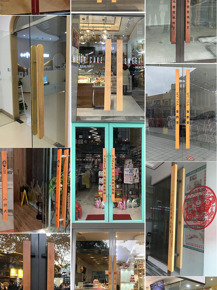 Tay nắm cửa kính đăng nhập tùy chỉnh phong cách khắc gỗ rắn khách sạn tay nắm cửa bằng thép không gỉ tay nắm cửa gỗ chữ