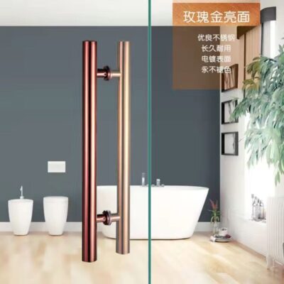 Tay nắm cửa kính dày bằng thép không gỉ hoa hồng vàng sâm panh đen titan màu KTV hộp cửa gỗ cặp tay cầm lớn