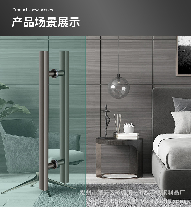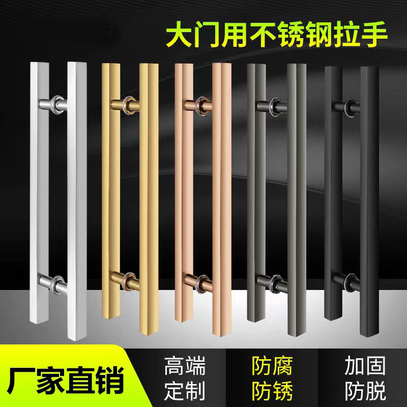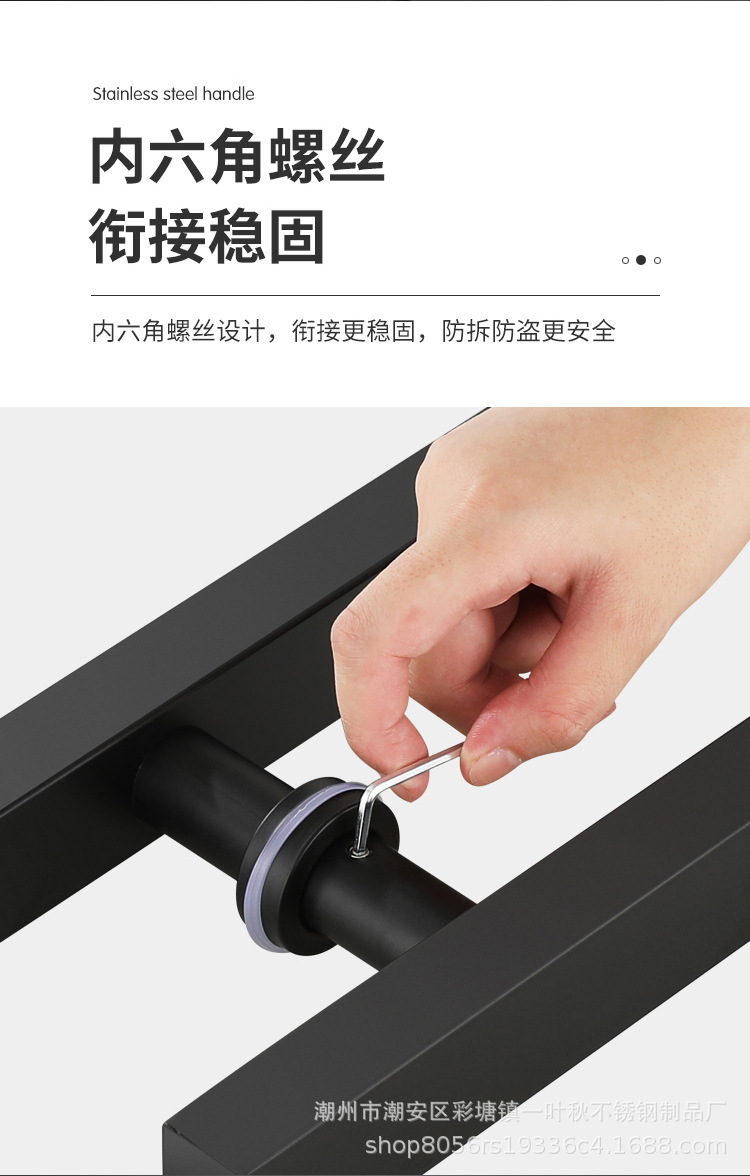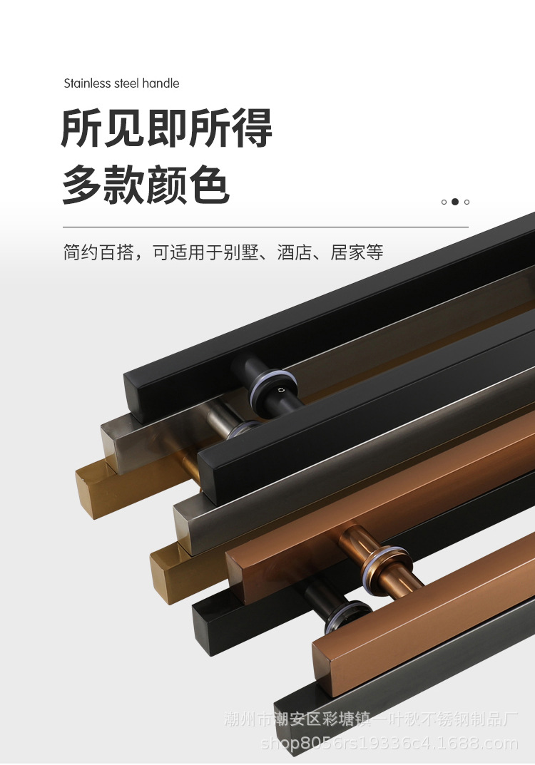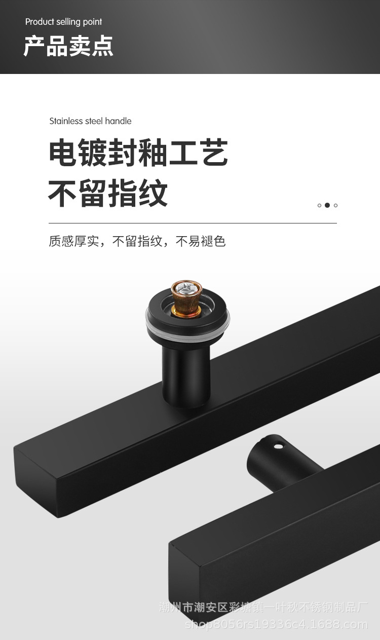 Tay nắm cửa kính đơn giản hiện đại bằng thép không gỉ ống vuông dày nguyên chất màu đen văn phòng Tay nắm cửa nhà máy bán trực tiếp