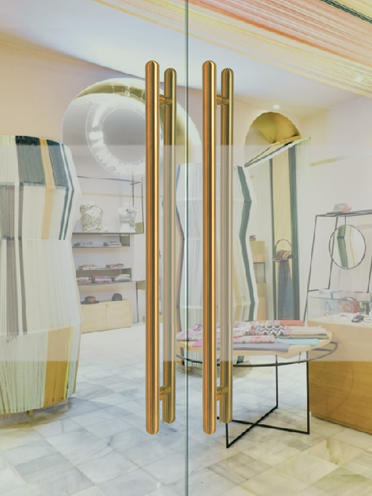 Tay nắm cửa kính gắn bên hông bằng thép không gỉ dày tối giản phòng riêng văn phòng khách sạn cửa gỗ rắn tay nắm cửa vàng