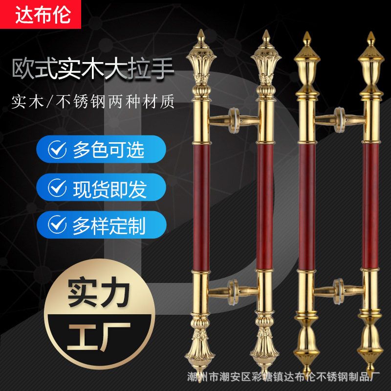 Tay nắm cửa kính gỗ đặc khách sạn KTV cửa chống trộm tay nắm cửa inox phong cách Châu Âu cổ tay cầm gỗ nguyên khối bán buôn