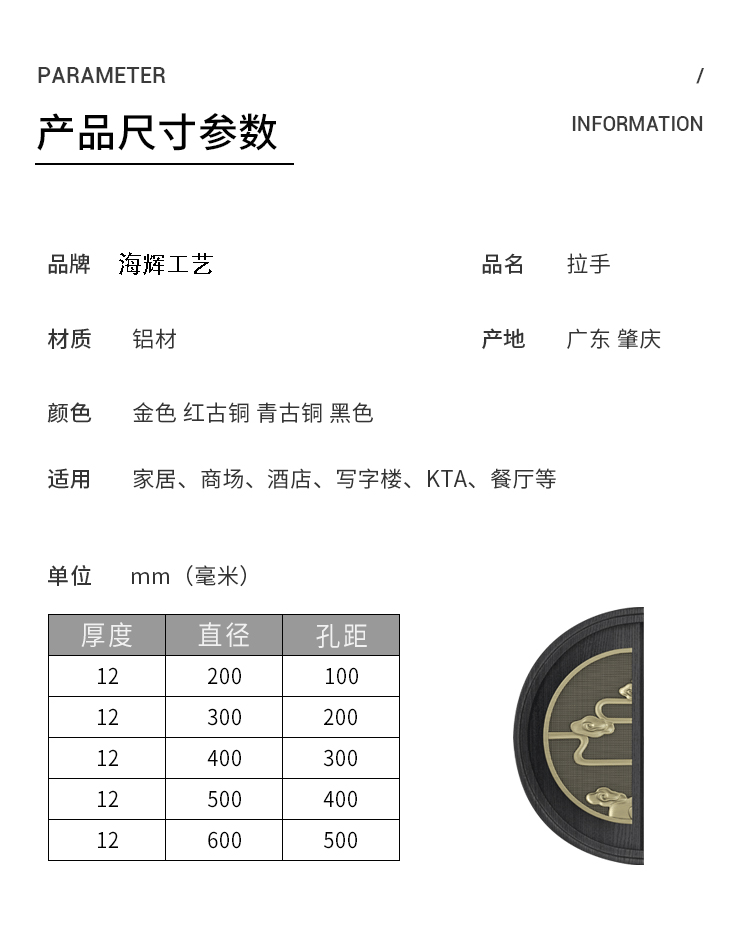 Tay nắm cửa kính hình bán nguyệt kiểu Trung Quốc mới tay nắm cửa khách sạn tay nắm cửa gỗ tay nắm cửa trượt tùy chỉnh Lan can đồng cổ
