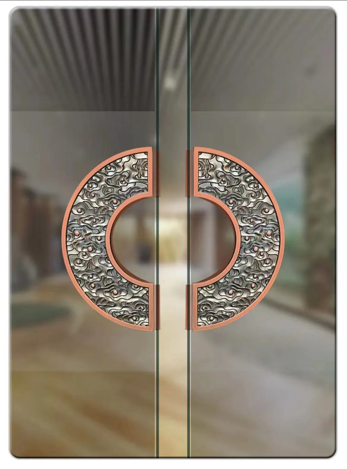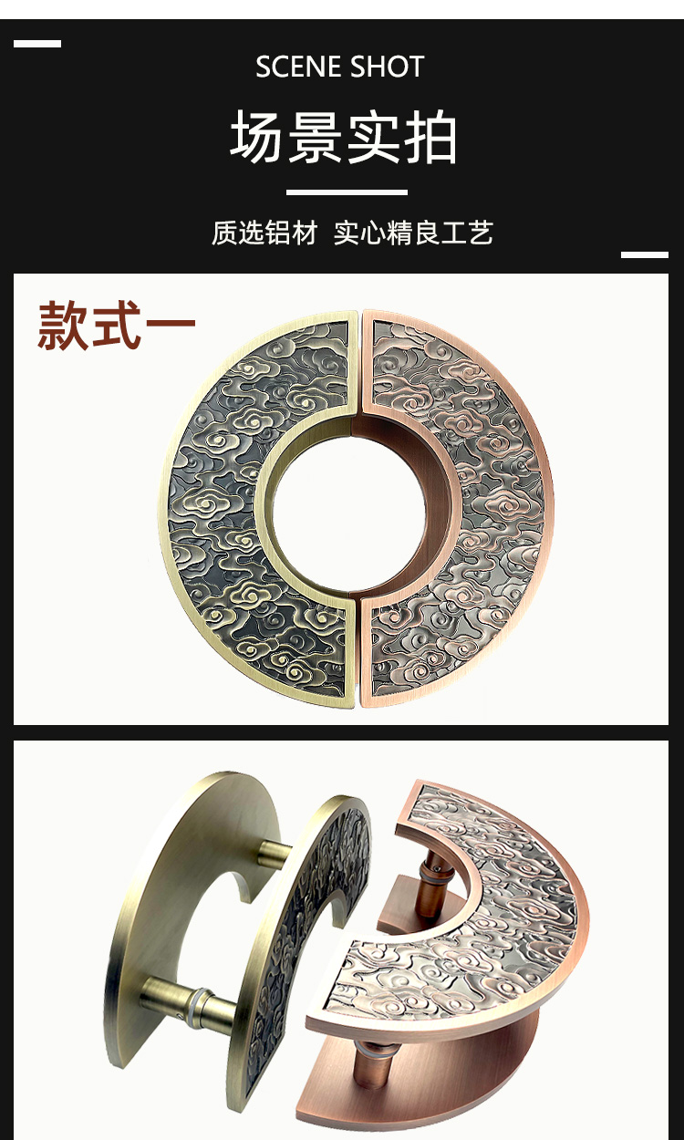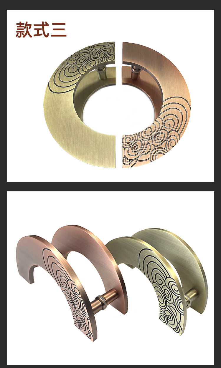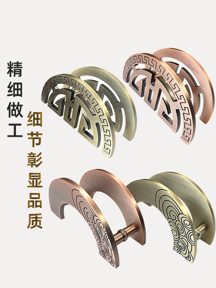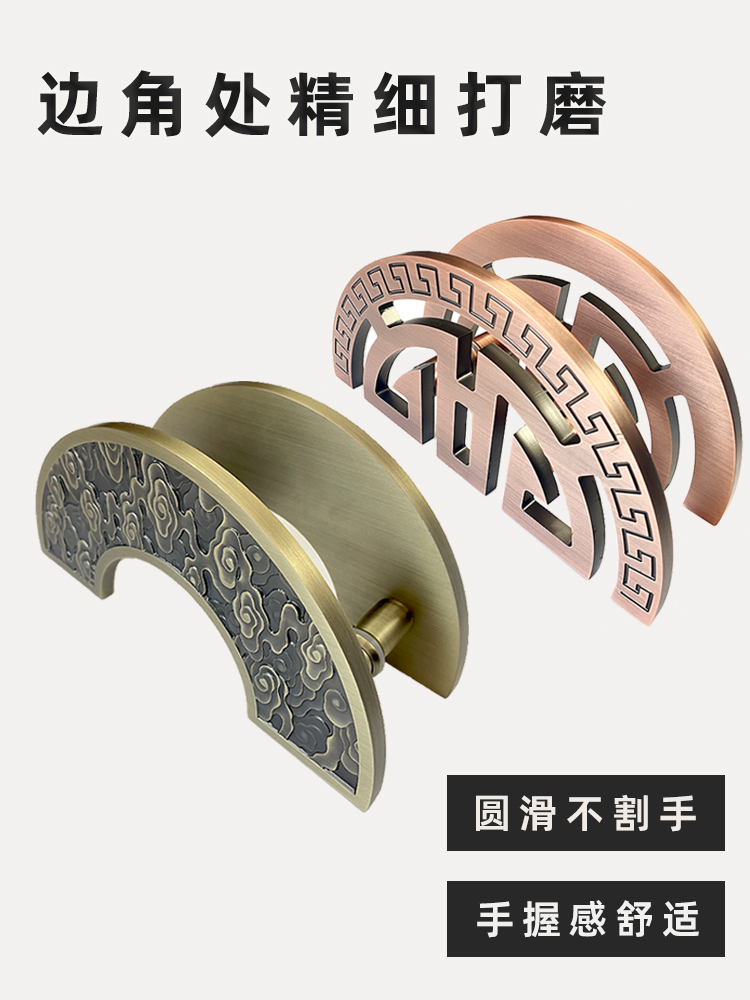 Tay nắm cửa kính hình bán nguyệt Trung Quốc Tay nắm cửa hình bán nguyệt logo tùy chỉnh giả đồng cửa gỗ tay nắm cửa hình bán nguyệt