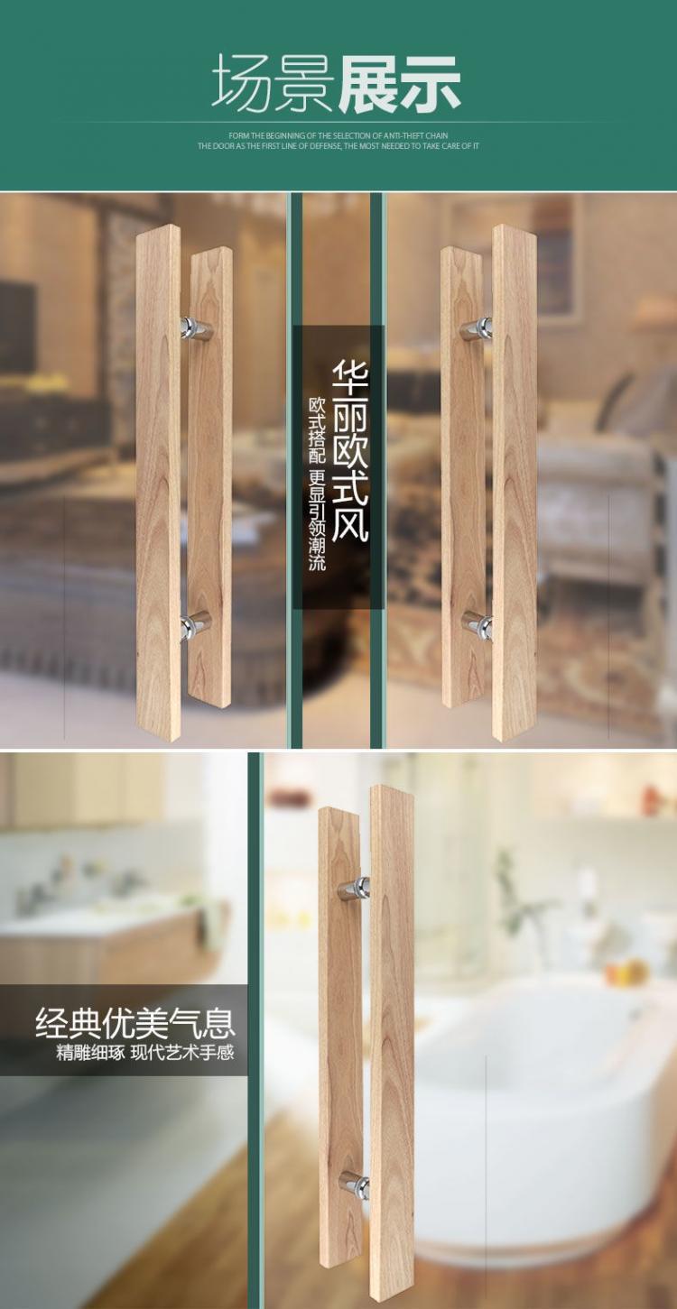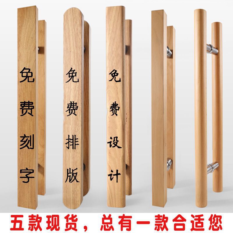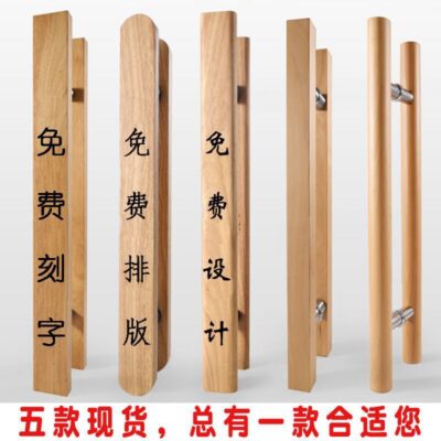 Tay nắm cửa kính kiểu tay khúc gỗ khắc cửa gỗ khách sạn Tay nắm cửa quán trà sữa tay cầm bằng gỗ