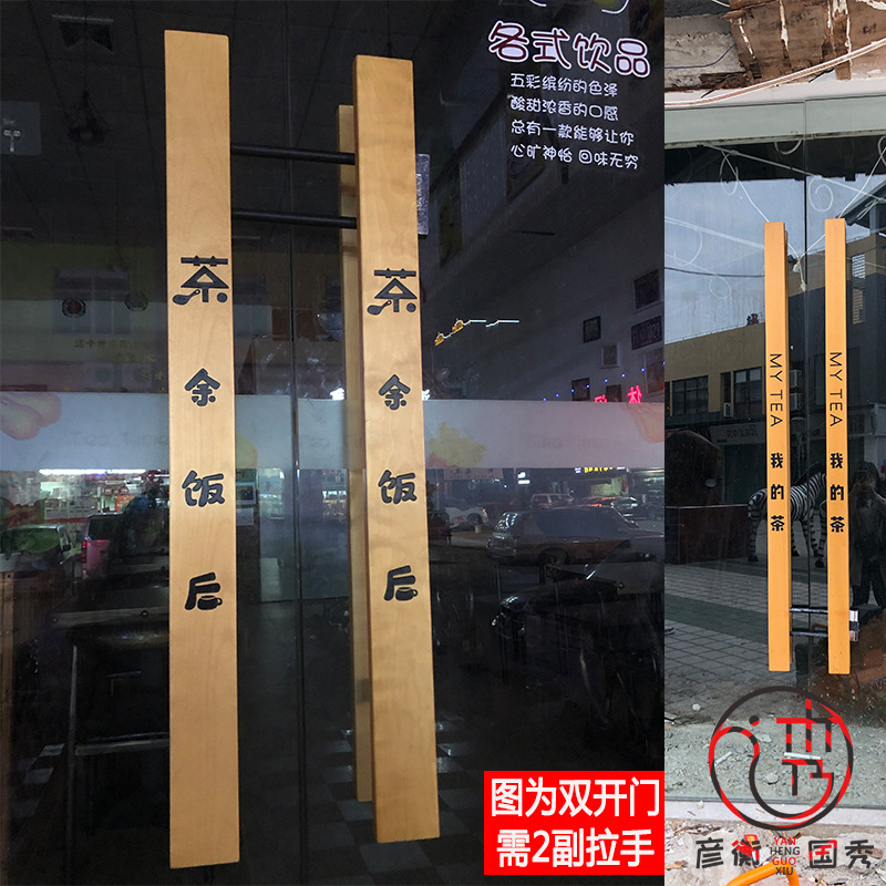 Tay nắm cửa kính LOGO tay cầm bằng gỗ chạm khắc chữ cửa khách sạn Tay nắm cửa bằng gỗ tối giản hiện đại tay cầm bằng gỗ